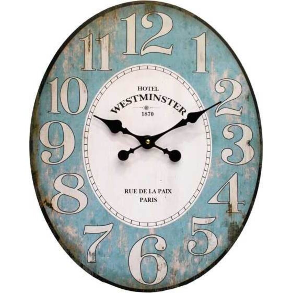 There's few clocks better than this Oval Westminster Clock from Lavida. This pale blue oval shaped clock features oversized white numbers, back hands, and a white oval in the center that reads, "Hotel Westminster 1870 Rue de la Paix Paris." The entire piece is worn to give it an aged appearance as if it were plucked straight out of your grandmother's attic and hung right on your wall. It may look like an expensive antique from the City of Lights, but no one will be the wiser. It would make an excellent addition to almost any room in your home.