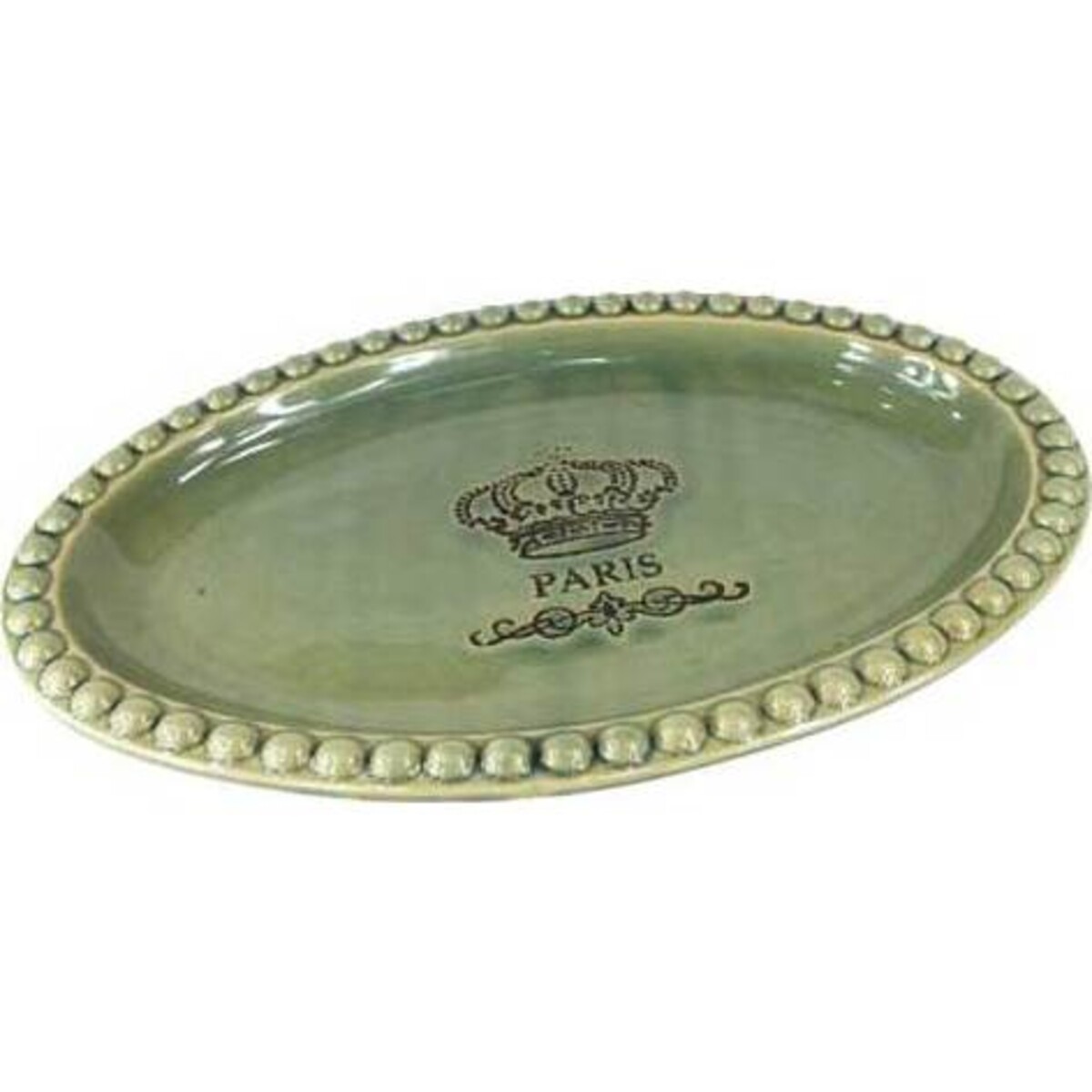 The green platter features a black crown design at its center with "Paris" stamped underneath. A black line flourish adds a beautiful final touch. Bordering the platter are raised half circles, adding fabulous texture to an otherwise smooth piece. It's large enough to hold any appetizer you desire, from kebobs to cheese and crackers, while still being small enough that it's easy to handle and not cumbersome. This is a truly special piece, and you'll want to find any excuse to use it on a daily basis and not save it just for special occasions. One look at it and it's easy to see why.