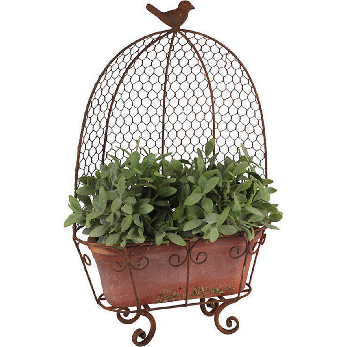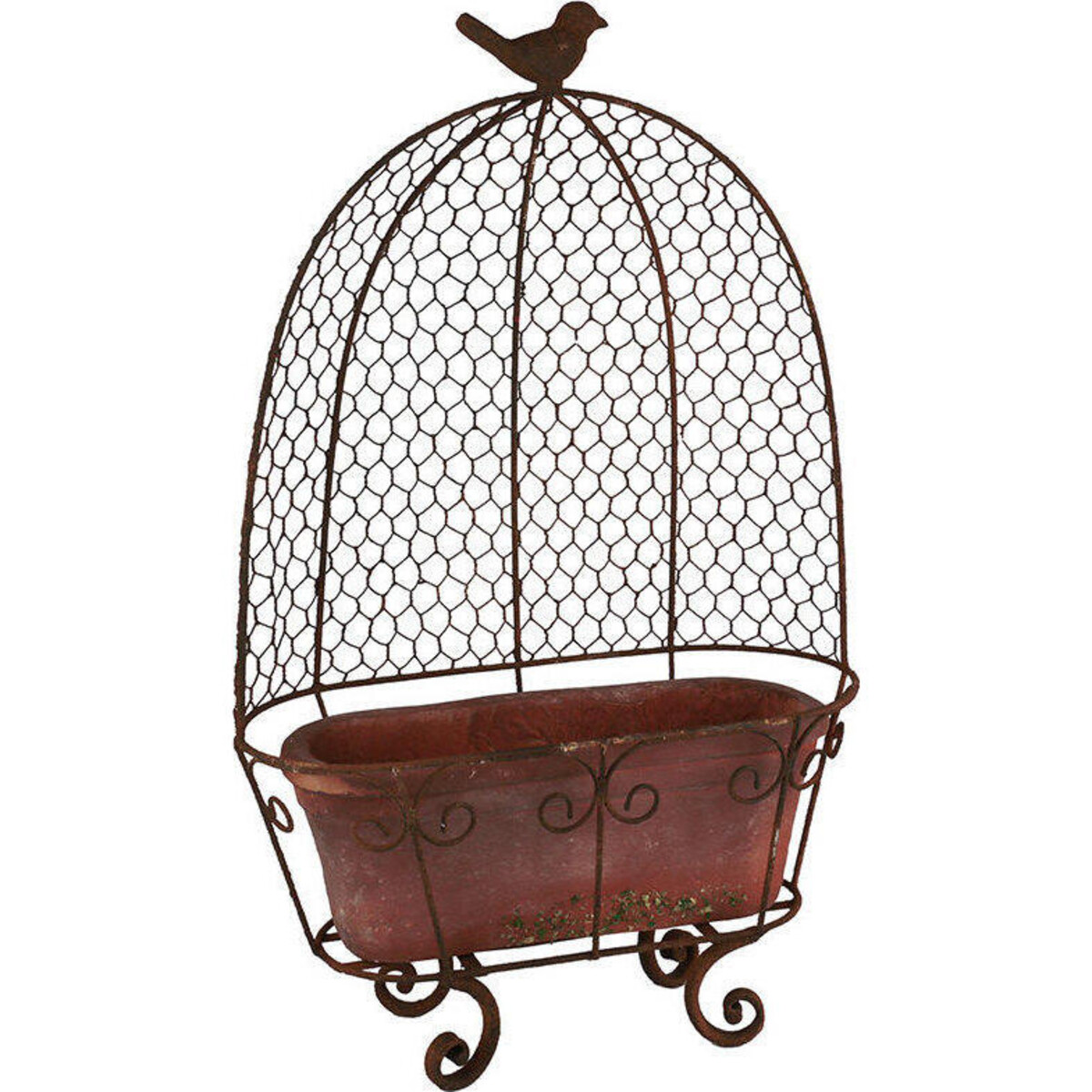 Using plants for decor purpose be it in the outdoors or the indoors does need some classic design planters that help bring out the beauty of plants to their optimum and this gorgeous rustic and antique value design does that and more. Made from metal, the rust coloured frame has a gorgeous antique design with curled legs and an oval bucket like frame within which the oval tub made of fibre clay rests. The mesh back gives trellises and creepers just the right kind of supports and thus would be most suited for such plants that are soft stemmed. The tiny bird on top of the mesh a backdrop adds the touch of whimsy setting this planter apart from the ordinary. About 55 cm tall and 33 cm in length with a width of 16 cm makes it adequately large for all kinds of settings. Go on and crate a cohesive feel antique look space with even the planters responding to the grand theme.
