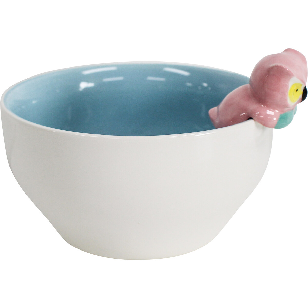 Porcelain is also a great material and we find that the finish on these pieces is really smooth and high-quality - which is important when selecting an item for the kitchen area. The bowl itself is white, with a glossy blue interior that beautifully complements the pastel pink owl design. This unique combination can add an element of fun to any space, making it an excellent talking point at events or even just in day-to-day use in households.