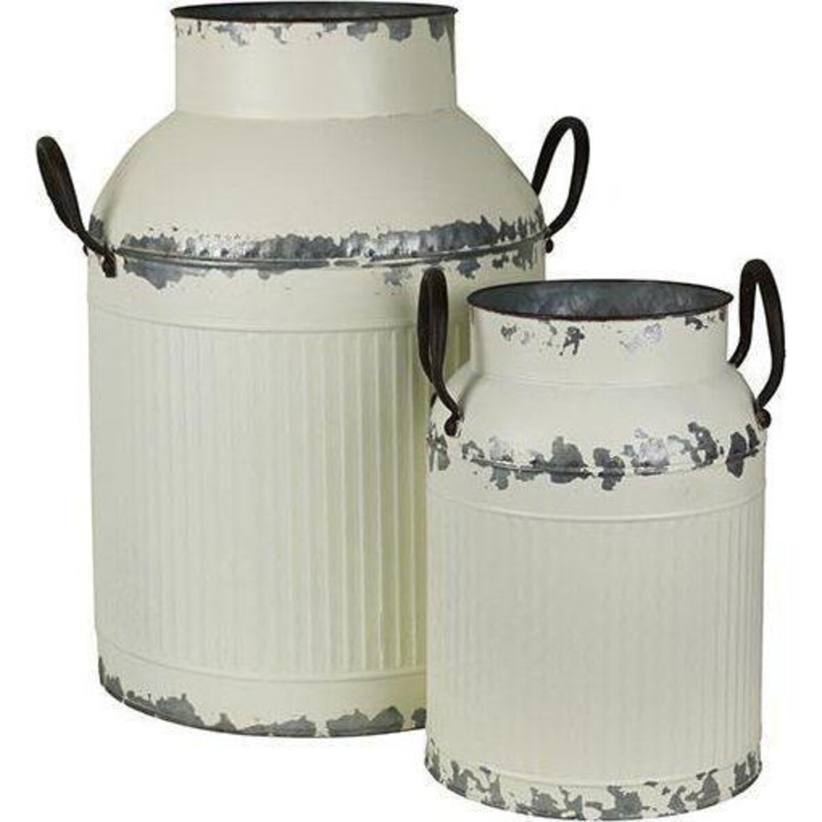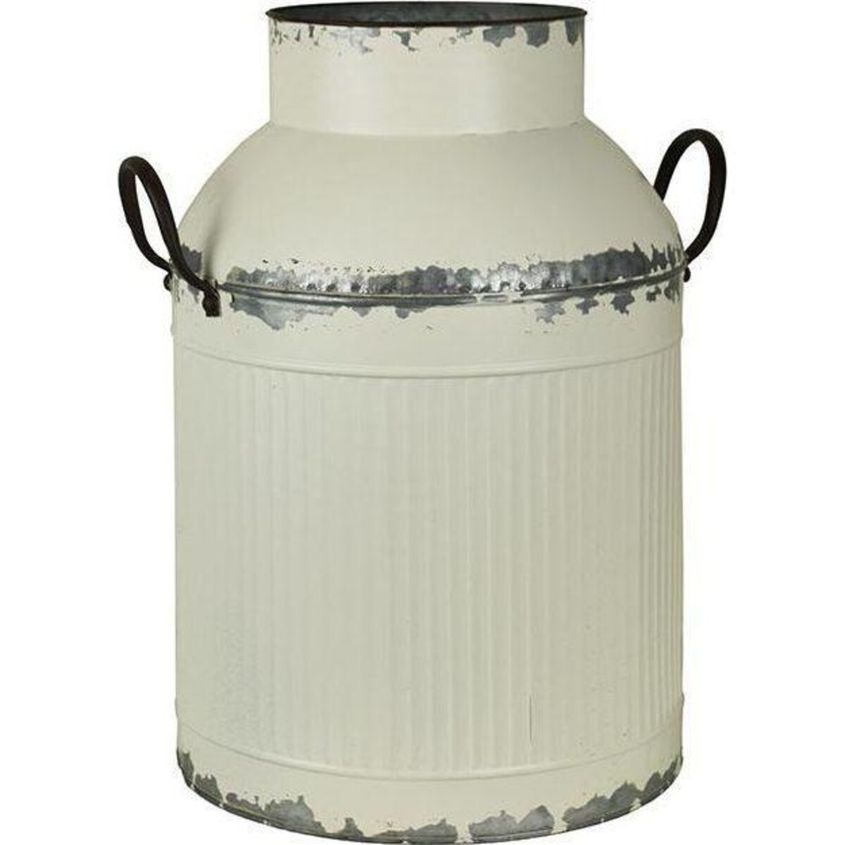 Whether you happen to use it in the garden as a planter or in the interiors of your home to hold a blanket, some fresh cut blooms or simply to add a background to your other décor - there is no way that this décor addition will not be noticed. About 42 cm high, it could be paired with other metal shabby chic elements and given a whole new feel in your home. The soft subdued white, the black round handles and the4 ribbed body adds the look of classic vintage right away. Make this and several such additions part of your décor and lend your home something of interest. Add some heather or dry flowers as they work great as vases or simply place them alongside plants in the corner for a lovely backdrop. You could team it up with taller, shorter and more wider mouthed planters in metal for a more profound shabby chic feature in your home.