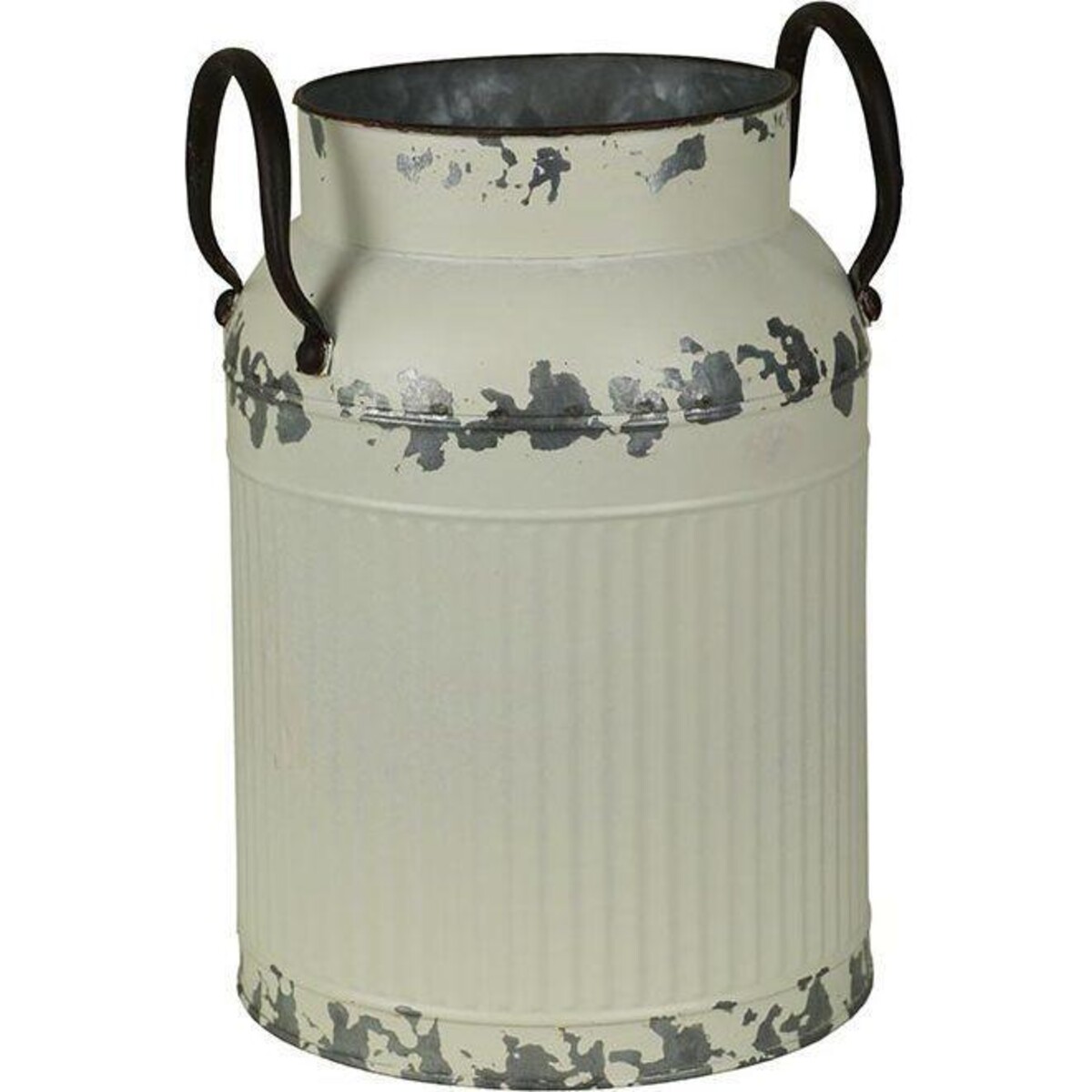 Add this bucket to your spaces and bring on the freshness of the farm and country instantly. Used in the past for a number of reasons, - to store fresh plucked fruits, or to bring in fire wood and also to keep washed laundry - pails have been around for long and are a sturdy accessory that can be used in so many ways. This ribbed body one with its shabby chic markings is utterly desirable be it outdoors for growing plants in or simply to decorate corners inside the house. All of 28 cm tall, with round handles that make it easy to handle even when filled up with things, it would be quite the eye catching addition wherever you wish to place it. The outer body is a shabby chic finished off white while the handles added to its mainframe is black thus contrasting vividly and making the look all the more classic vintage.