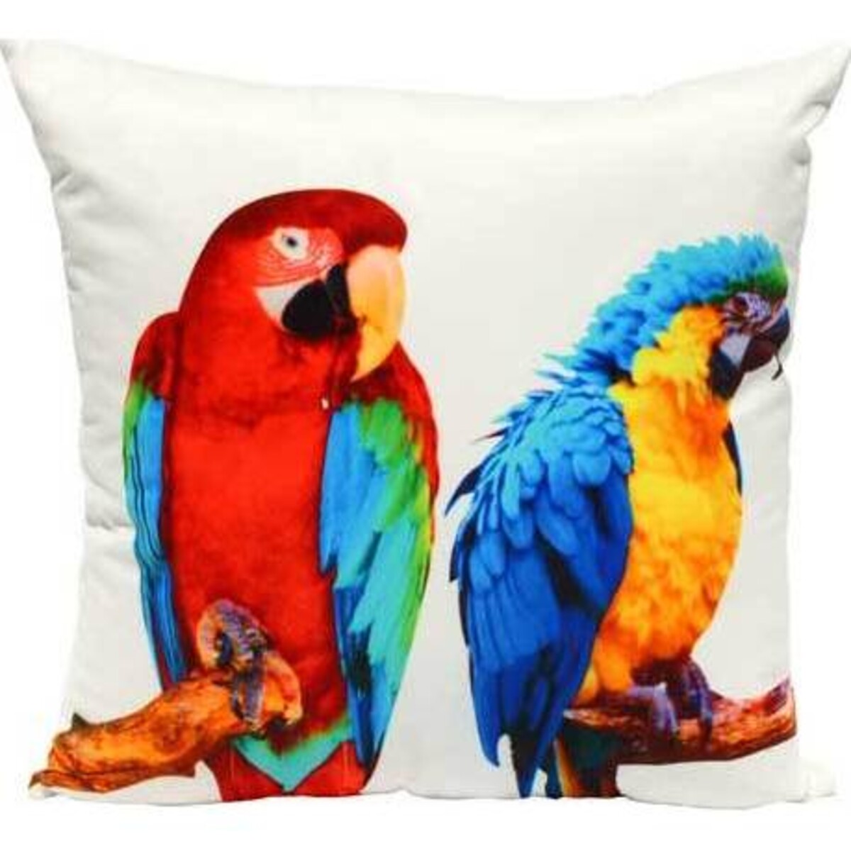 These white square velvet cushions feature two Macaw parrots sitting on branches while they keep each other company. The vibrant colours brilliantly stand out over the white background. They're a great addition to any home, and are a wonderful way to add a big burst of style and colour to even the most neutral coloured spaces. Add them to your bed, a couch, a chair, or anywhere else that could use some colours and images of fantastic birds. The cushions also make great gifts to those who adore the parrots as well.