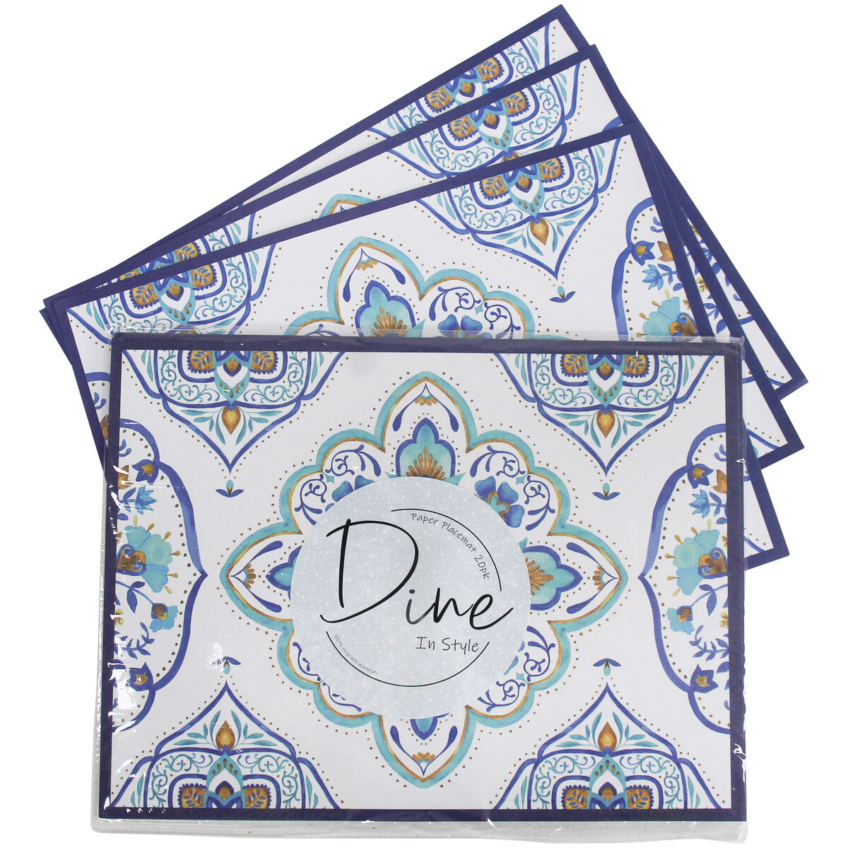 What do you think about placemats that look like they've come straight out of a Moroccan riad? Our Paper Placemat Set of 20 in the Moroc design has this beautiful mix of indigo and teal with that subtle golden yellow, and every pattern looks like a work of art. People often say these make a weekday dinner feel like a celebration. And for a product that's made from 120gsm wood-free paper and measures 30x40cm, they're actually surprisingly durable. You'd expect them to be a little stiffer and less practical but they're nice to use, which is always something we look for in paper placemats. We think they'd work well for anyone looking for temporary placements for parties or hosting, or even as decoration for their food spreads.