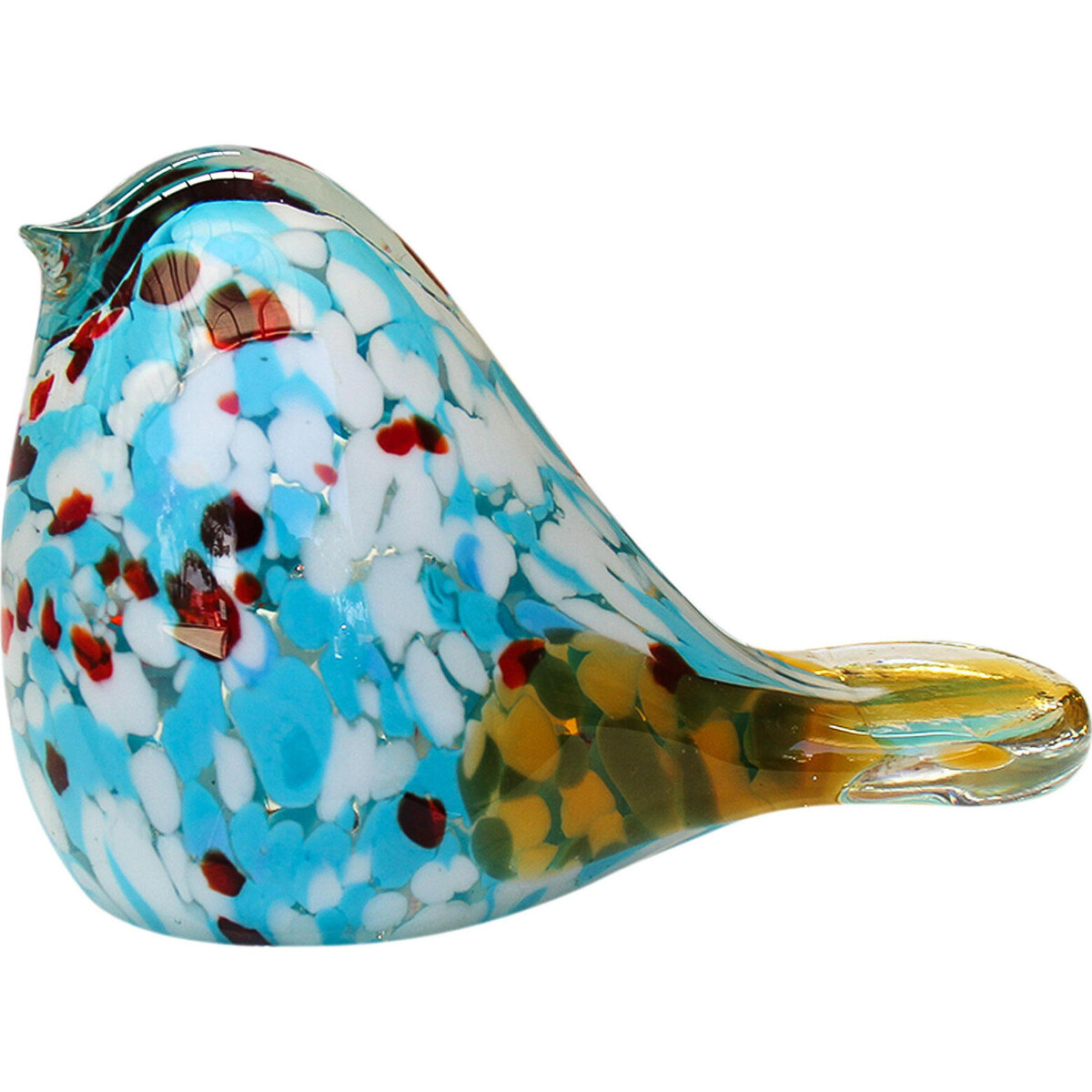 Add the touch of natural magic with a presence whose pleasing looks will change the very mood of the space. Created from glass by an expert who knows the fusion of shape, colours and form the smooth glass shape is a perfect little bird that marks the advent of things more Spring and Summery, in feel in your space. Accentuate any shelf or corner with its presence or simply use it on your desk to keep your loose sheets under control the beautiful rage of colours infused in toe main body which is blue, makes it all the more spectacular. The bird is all of 12 cm in length its beak and tail clearly shaped adding to its adorable look. It sits on the flattish kind of base making it a great paper weight. With its weight ensure that despite the winds that seem to sneak indoors and make a mess on your table, you would be finding this birdie quite handy at managing things. Smooth. Filled with the beauty that colours bring and of course the joy of having something that is handcrafted has its own charm.