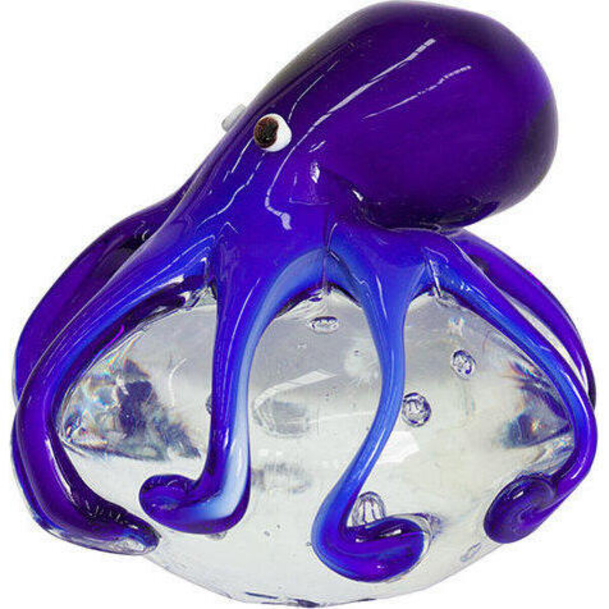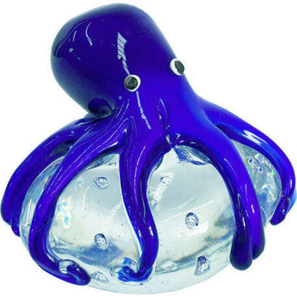 If it isn't the very excitement of seeing an octopus gracing the top of your paper weight it surely will be the inky coloured hue that makes it so very stunning - there is no escaping the eyes that pin your down and makes sure that he gets his fair share of attention. This superb replication of one of the most admired of sea creatures makes for a wonderful little aquatic themed décor for your desk - apart from the very fact that it is supposed to keep your flyaway loose sheets pinned down, the very interesting design of the piece will ensure that your desk does not lack colour or look boring! The glass made pieces has an orb of round glass sitting atop which is a delicately formed octopus, expertly created by glass bowers who are as creative as one can get. Get bowled over by the rush of excitement when you hold the orb and make it sit on your sheets. The eight tentacles seem to be holding the orb down and he slithers and sits there glued to his seat. A wonderful accessory for your desk or a gift for someone who cares for nature themed accessories.