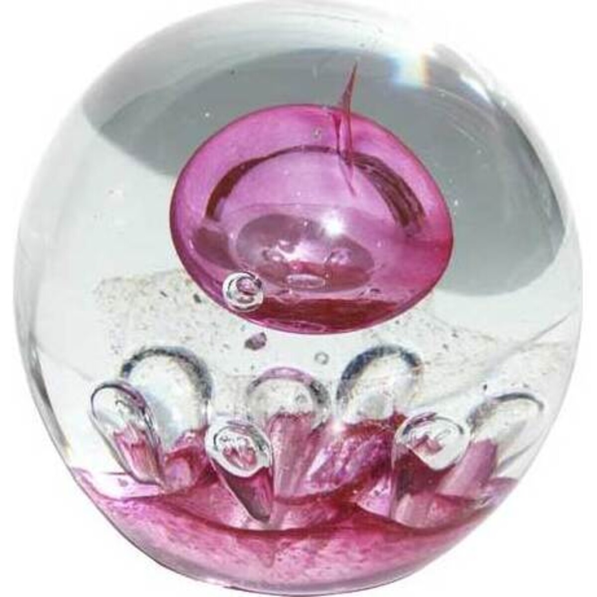 The beauty of this paperweight is that it's a small little work of art in itself. The clear glass is filled with multiple pink bubbles as well as small clear bubbles, all of which come together to form a design you'll simply love. Who said office products don't have to be stylish? If you have to look at it every day, it may as well be something you like staring at.