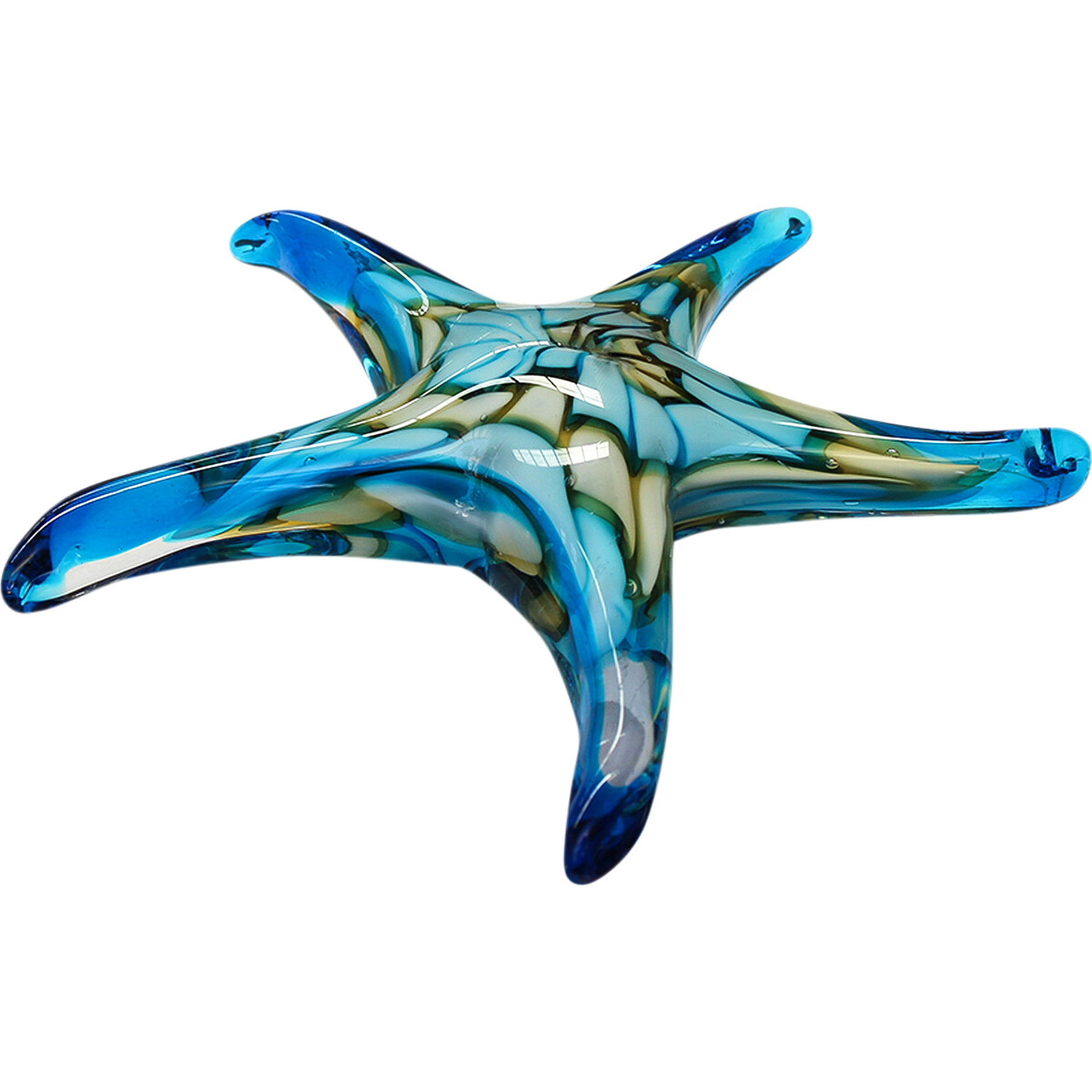 Be it to accent your coffee table with a marine kind of look or to make your study table more organized keeping your imports sheets and paper well under control-there are so many great reasons to want this beauty in your midst. Filled with myriad colours radiating as if from the centre in a spiral. Here is handcrafted glass wonder smoothly finished and filled with a colourful presence that its bound to bring to your spaces. Made with the finest of clear glass, the superb craftsmanship evident in the smooth body of this starfish makes it a fine example of modern chic settings that love the marine look. Styles precisely its 17 cm length and width is the kind to hold on to errant sheets of paper wanting to make a quick escape flying all over. Keeps them pinned down it its weight. The blue colour will also bring a soothing marine look that is most relevant in the summer ready home.