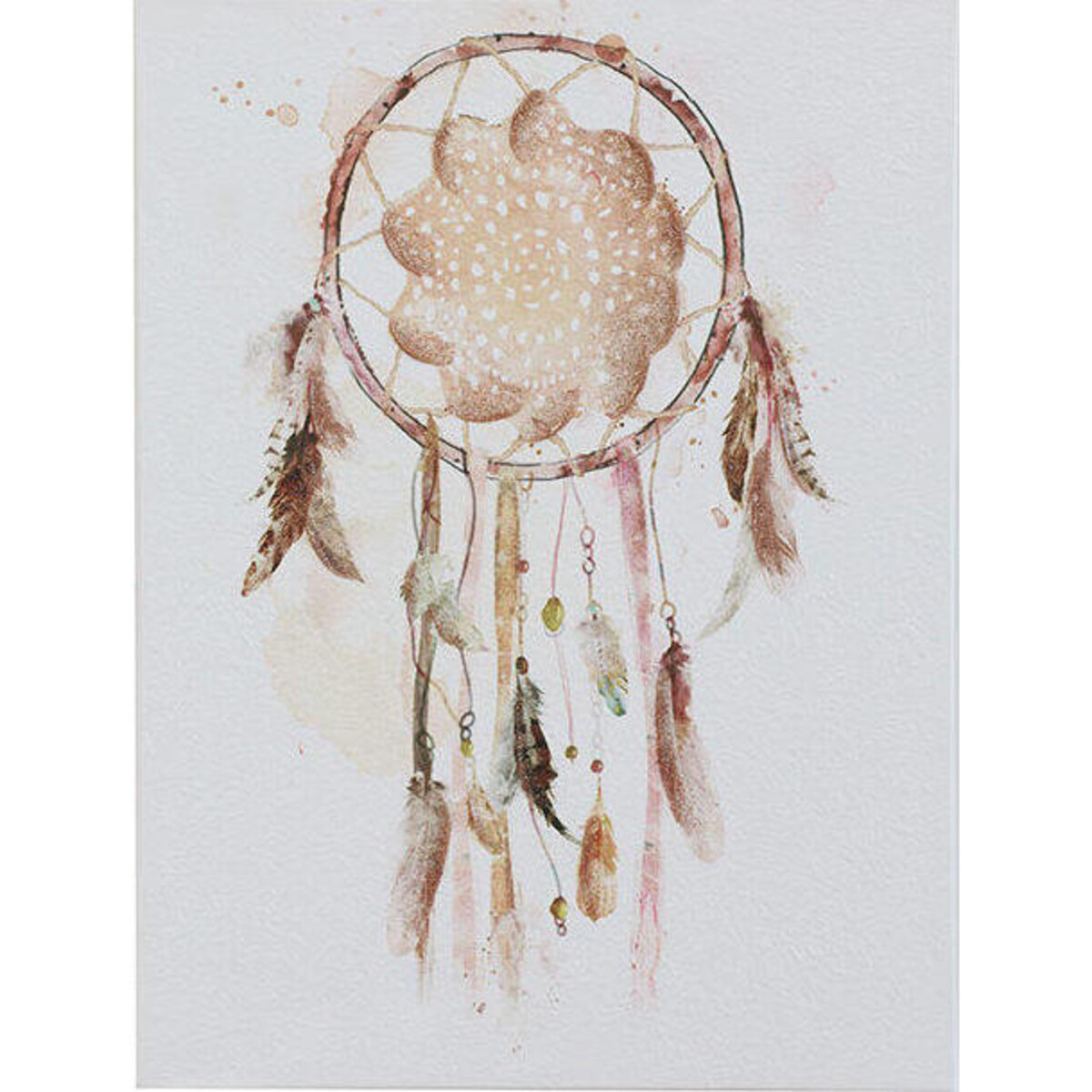 The dreamcatcher has become a symbol of how life could be about living your best dream and this parchment print seem to give it a value beyond the ordinary. Simple graphic gets elevated to a kind of art form that resonates with the thought it can create in your mind - after all art is a process that begins with the eyes and ends in impacting your thoughts. The parchment quality is handmade and the print in the subtlest of colours has a lovely vintage feel to it. The shades of beiges and pinks - the delicate nature pf the feathers as if afloat in the breeze makes this an airy and soft image to help soften the look of any space and blend in a look of modernity. Lavida as in fact with its huge range of prints this season removed the straight jacket approach to hosting art in your home and for sure this parchment print makes the cut famously. The size of the pint at 40 cm in height and 30 cm in width gives it the right kind of proportion.
