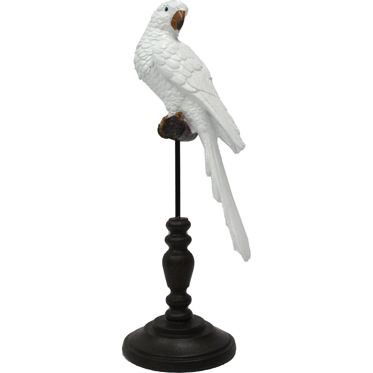 Parrots are man's intelligent companions. This resin figure is a lifelike imitation of the fascinating parrots. Parrot White/Stand is also pretty impressive because it breathes refinement into any room in the house. Besides its charming beauty, parrots are admired by many for their happy expression of all the good things in one's life. Parrot spirit animal could also be an expression of good things that one is yet to experience. Parrot White / Stand is significantly sculpted with precision. Its neutral tone complements one's home décor. Covered with a colourless lacquer for a beautiful shining effect. This piece requires minimal maintenance.