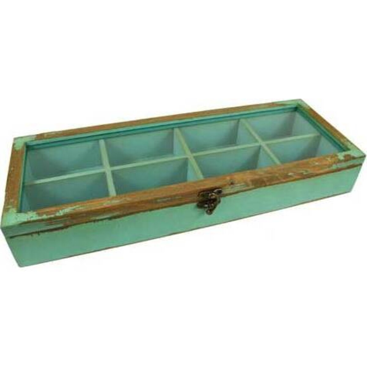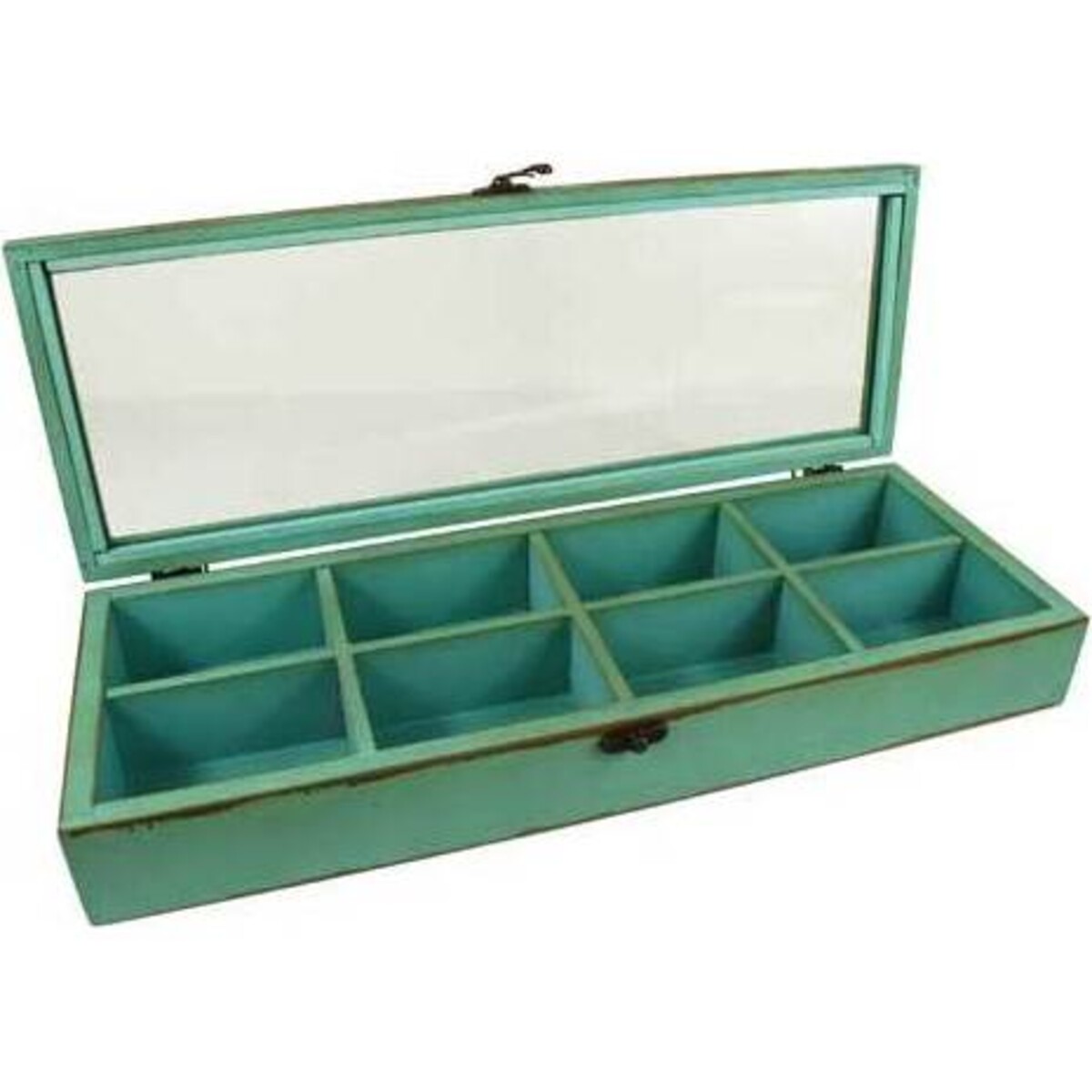 Trinkets and all tiny collectibles have an annoying habit of making them hard to find especially if one is hard pressed for time. Boxes that allow one to securely keep these tiny little objects of desire are the best way to keep them well within reach. This shabby chic inspired trinket box looks truly vintage and its eight compartments that are spacious enough will not only hold adequate numbers of articles but will allow one to classify them ,according to size, colour or whichever manner one would like to keep it organized. The wood and glass box is rectangular with a glass lid which allows a clear view of the articles inside making it all the more conveniently to identify and search for what one wants. The perfect little place for ones precious trinkets or little buttons and accessories.