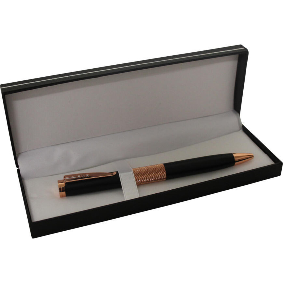 For all those, who whose day significantly need much of writing, would love to own this gorgeous looking metal bodied ball point tip pen. Opens with a smooth twisting action and carried out its writing function effortlessly. The pen is all black in a beautiful matte finish with copper coloured clip and band that embraces it across the body. The copper blends in with a stunning impact with the darker colour of the pen. The grip of the pen is fine and will not tire your fingers. Smooth writing accompanied by an easy opening and closing, non - botchy ink flow and stunning good looks are some of its features for which it is surely going to be loved a lot. The pen sits inside a case that makes it easy to give away as a gift. Will give your years of fabulous writing function. The length is all of 14 cm making it a compact case. Hold this pen up in your hand and feel the superb grip and balance it allows you - of course the intense love you feel for its superb styling is quite another aspect. Beautifully cased, it shall make an easy to handover gift much because of the lovely case that it comes with.