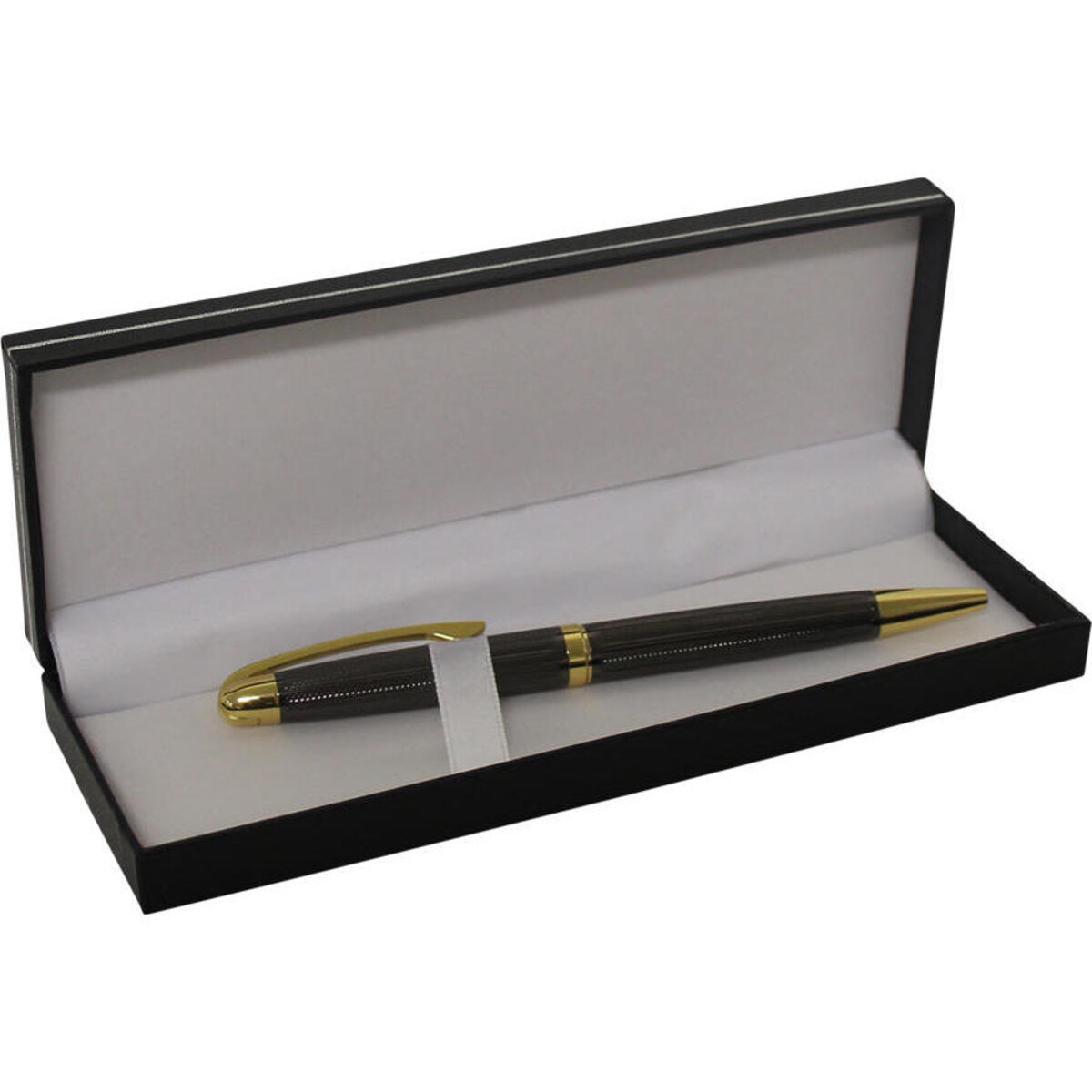Made with the highest standards in creating the finest of stationery for those who love the god standard ins quality stationery comes this twist and write ball point pen for your everyday need. The gorgeous gun metal and gold coloured pen would make an impression as much with its bold colour as it would with its design and smooth writing ability. A simple twist and write mechanism makes it user friendly. The case it comes in, adds to its glamorous feel and makes it a perfect way to gift away something that will surely be loved. The superb handling, and the delicate gold tip, the ribs along the body in silver look gorgeous when seen in the deep gunmetal silver colour. Fine quality metal body will last through much usage. A unique and sophisticated addition to your writing components on the desk or your student cabinet. Sitting inside your coat pocket, the clip visible, or inside your handbag waiting to be exposed to the one work it does abundantly well - on all counts of functionality, this makes for a high quality writing accessory.