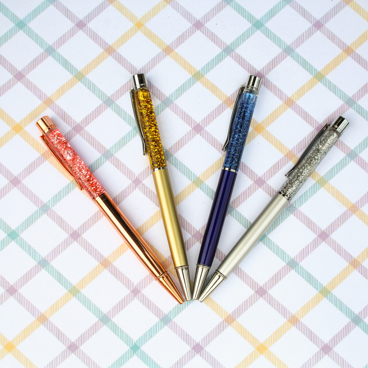 This one comes in its individual little box is slim and easy to grip. The metal body in silver is stopped by this silvery top that actually shows off its sparkle. A neat clip on one side makes it easy to secure in pockets and thus avoid it popping out and getting lost. The pen has fine grip and does not tire your hand in spite of writing with its for long because of the slimness and lightweight nature and yet it has a well-balanced feel when held. The metal body has the right amount of weight to allow it a good glide on paper. The body of the pen is partially made of clear plastic through which the shimmery sparkle is visible. Makes a delightful little gift for any occasions and also a party favour that will be much loved. Make it part of your own collection or simply give it to someone who cares for fine stationery.
