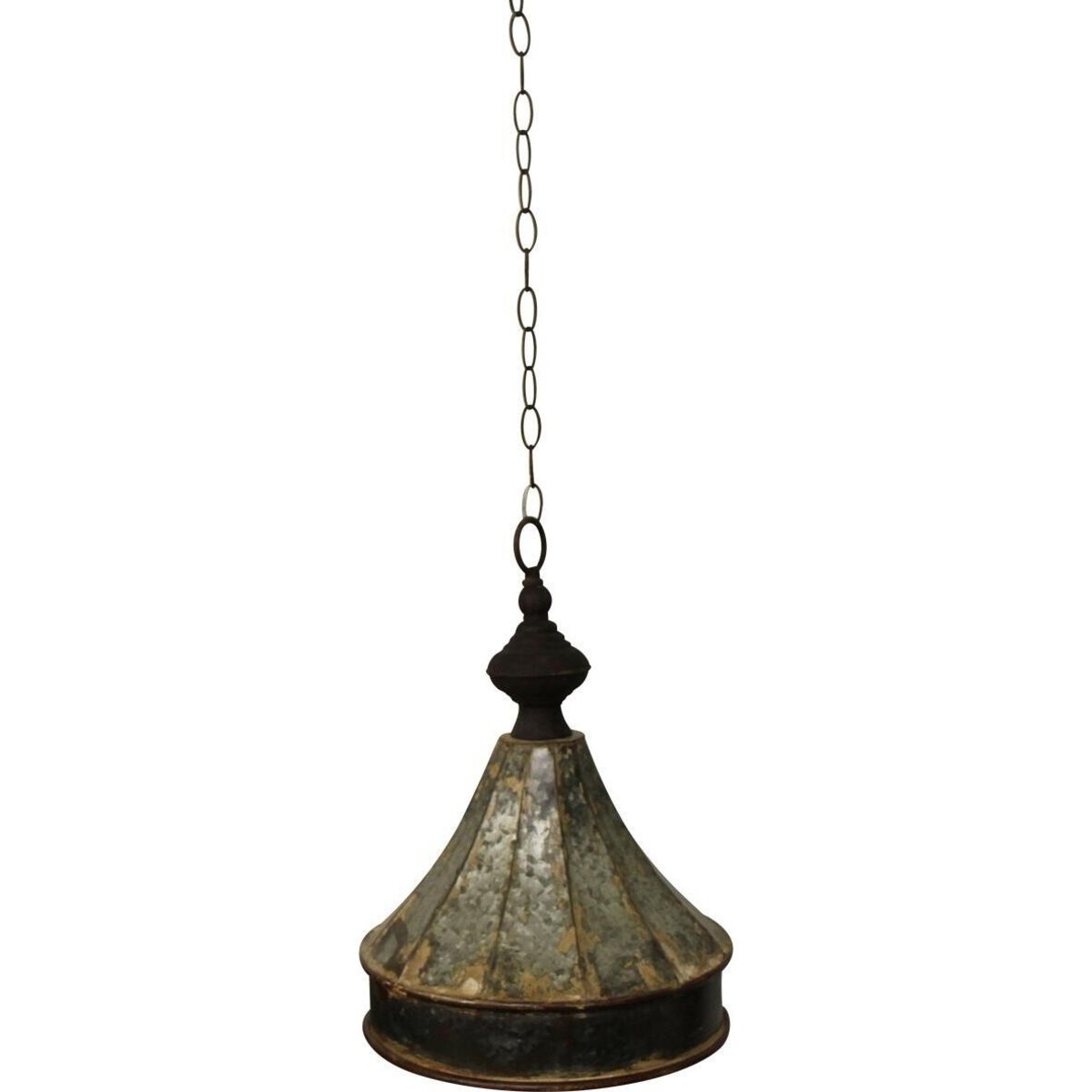The galvanized metal pendant lamp has a faceted exterior which lends it its rustic kind of beauty that is truly unique. The blend of modern chicness with a simple kind of utilitarian design is what makes this a terrific addition to your bar, entryway, foyer or any such space that could do with some décor magic. The chin hanging adds to its quaintness and the metallic colour looks especially stunning in its natural raw colour. Will combine fabulously with all kinds of industrial chic décor - or even wit wooden interiors as much as with other metal made décor articles. Could be added in singles or in pairs for a more profound kind of effect. The chain hanging allows it a length of 43 cm and its diameter of 31 cm affords it a large focal area. Could be hung low using the chain or could also be raised high as one desires.