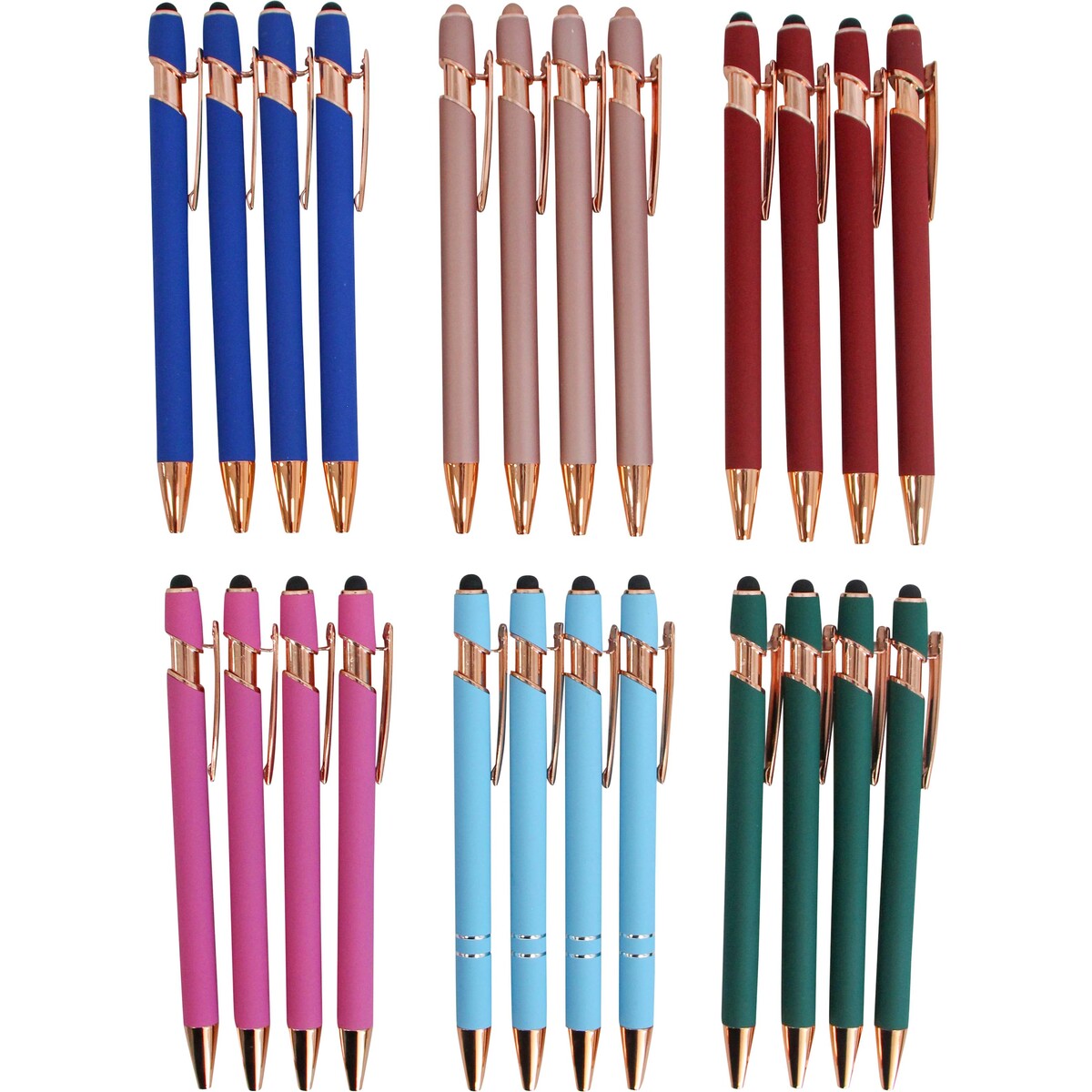 All made from plastic, metal, and silicone so you know they’re going to be long lasting. That little added touch on the back is for use as a stylus - which makes these pens practical even after the ink runs out. You’ll get four pens in each colour in one set - make sure your customers never run out!