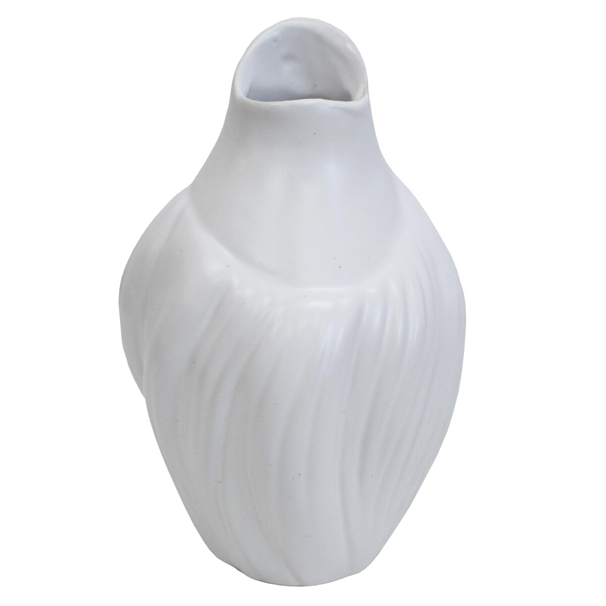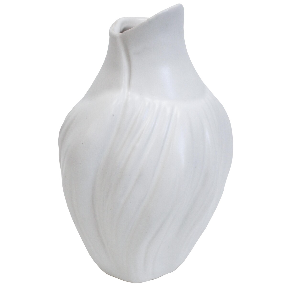 We're honestly quite proud of this one. The Petite Vase B White is a bit of a showstopper with its distinctive, organic silhouette - not every day you see something crafted this beautifully at just 9x8.5x10.5cm. It's got this soft, cloud-like finish that pulls in light and makes the whole piece feel very upmarket - almost like porcelain but there's nothing pretentious about it, just simple beauty in white ceramic. You get rippled lines flowing around the body which gives it a kind of dynamic movement and some subtle visual texture.