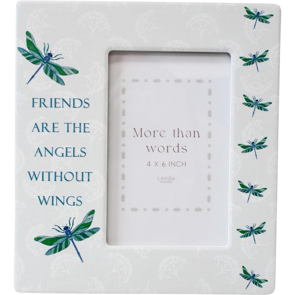 There are photo frames, then there’s our Photo Frame Friends Angels - something different for shops looking for a little joy in the giftware section. When we got these in, we realised they’d be perfect for making a pretty statement with any ordinary 4x6 photo. Friends will love these. It’s got a nice simple vibe - b’’ ceramic frame, some lovely dragonfly illustrations, and text that reminds us of what really matters: “Friends are the angels without wings.” Whether it’s a keepsake for the family room or something your customers can give to their bestie, this one really stands out. The design is quite versatile too - works with traditional rooms as well as contemporary spaces. The crisp white base and those blue-green tones from the dragonflies fit right in on side tables and office desks as well. Feels like there’s plenty of character here - and the flexi glass is sturdy but still lightweight at just 18x20x1cm.
