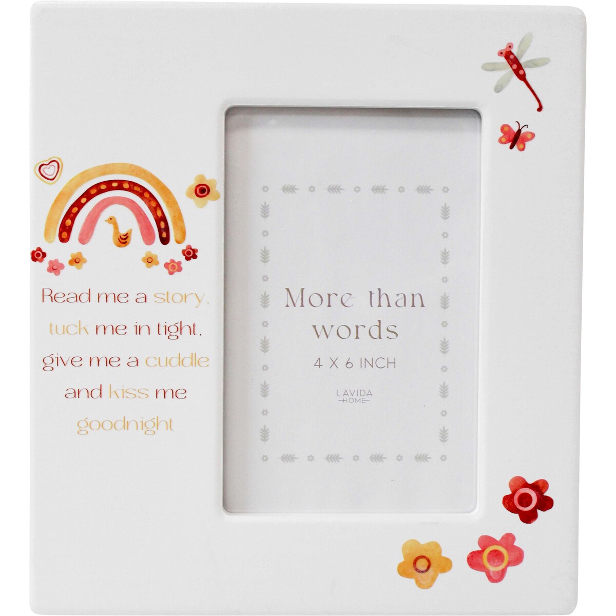 Oh, this one is such a charmer for any nursery, playroom, or family space - our Photo Frame Read Me a Story. There’s something about that gentle message and those colours that instantly just… feels like bedtime stories and comfort. At 18 by 20 by 1 centimetres, it’s a lovely little size for a bookshelf or bedside table - not too big, not too small. The ceramic frame with flexi glass gives it both sturdiness and safety for family homes, but there’s just this softness to the way it’s put together that customers will be drawn to. Those rainbow and flower details? They’re a proper little dose of childhood nostalgia.