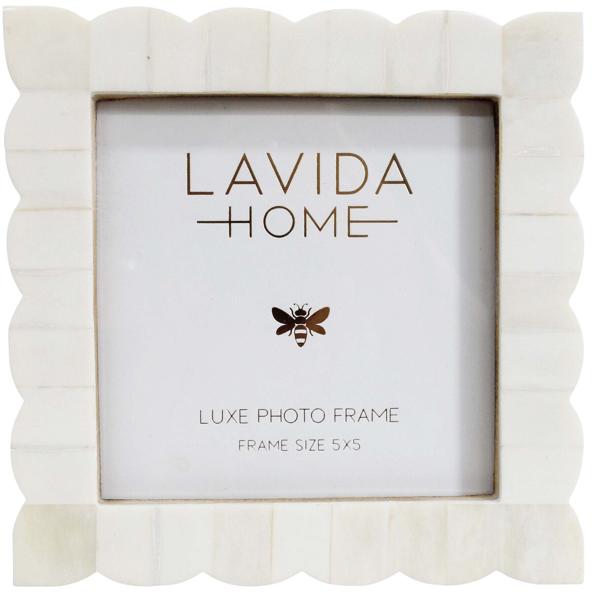 Elevate your home or office decor with the exquisite Photo Frame Scallop 5x5, an enchanting piece crafted from ethically sourced bone and MDF. Measuring 15.24 x 1.27 x 15.24 cm, this frame seamlessly blends artisanal charm with modern elegance, making it a captivating choice for any setting. The scalloped edges bring a touch of whimsy, perfect for showcasing cherished memories in your living room, bedroom, or workspace. Each frame is meticulously handcrafted, ensuring that no two pieces are alike; subtle variations in colour and finish add to its unique allure.