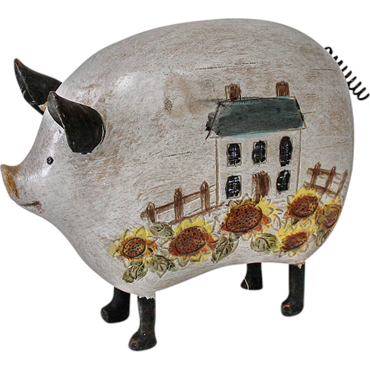 Bring home this absolutely adorable symbol of good luck and wealth with a rustic country vibe to it. It's specially designed for modern Australian homes that need a touch of country. This piggy decor is reminiscent of vintage European decoration from a silent movie. It exemplifies class and elegance. Placing this on a tea table or atop a mantle will instantly transform your home and room into a vintage landscape painting. It sports a regal charm and acts as the perfect conversation starter for a dinner party or tea party. It is made with the highest quality resin that makes this piggy weather-resistant, lightweight and durable. Its simplistic design and rustic aesthetic transports you to the peaceful countryside and makes you want to take a getaway trip to visit the field of sunflowers. Perfect for home decor and gifting on all occasions.