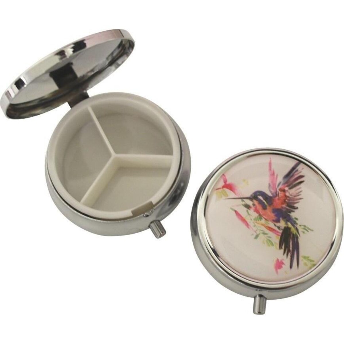 For some of us keeping our health parameters under check would need constant medication - so be it any kind of regular medicines, you could trust this pill box you give you enough support to make its consumption a habit. The inner space has been compartmentalized into three sections, one for each time of the day - morning, afternoon and bight - the usual timings that meds are taken. The inner portions is made of plastic and the inner lid has a mirrors that adds more to the charm of this organizer. The pill box is stylised to look like an accessory that you would be proud to flaunt. The superb solid metal body in silver gets complimented by the water colour hummingbird gracing its top cover. Easy to open with the press of as tiny button fitted on the edge it closes as much with as much swiftness. The compact pill box is barely 5 cm in diameter and will thus fit into any kind of bag or purse with ease.