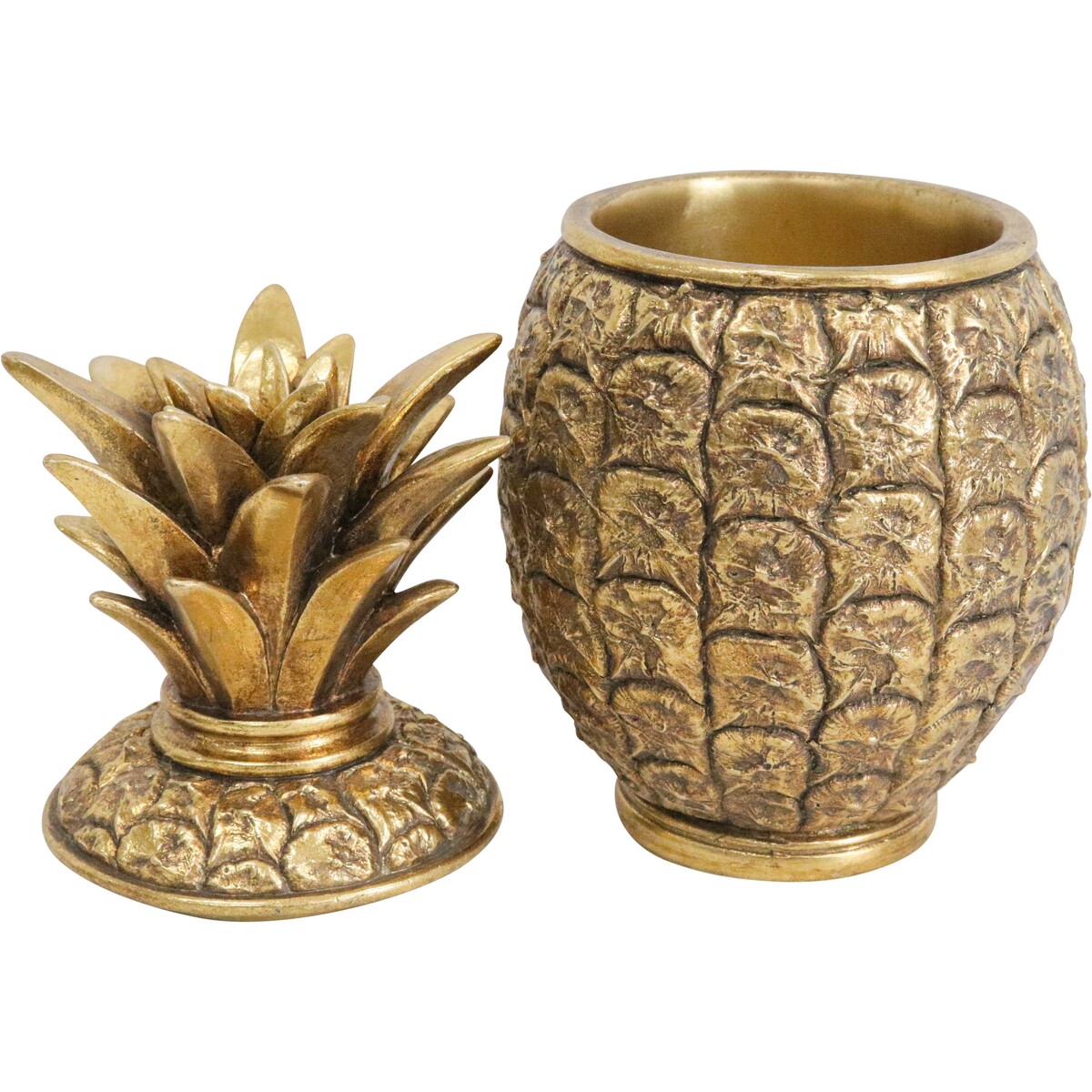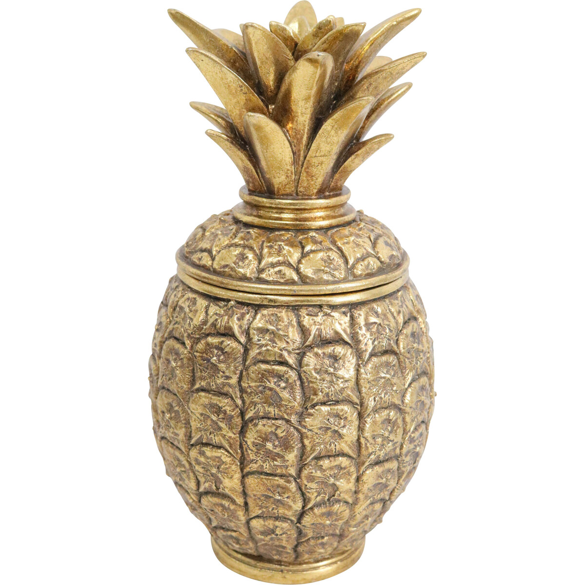 We find these boxes draw attention on display tables and shelves - they are beautiful objects that customers can admire from all angles. But what makes them really appeal is how you can open it up and keep trinkets, keys, jewellery or anything else right there inside. All our pineapple boxes are hand finished, so they vary a bit in colour and finish - we think this makes each piece unique and a little more interesting. Made from resin, measuring 11x11x20.5cm - just the right size to make an impact without taking over.
