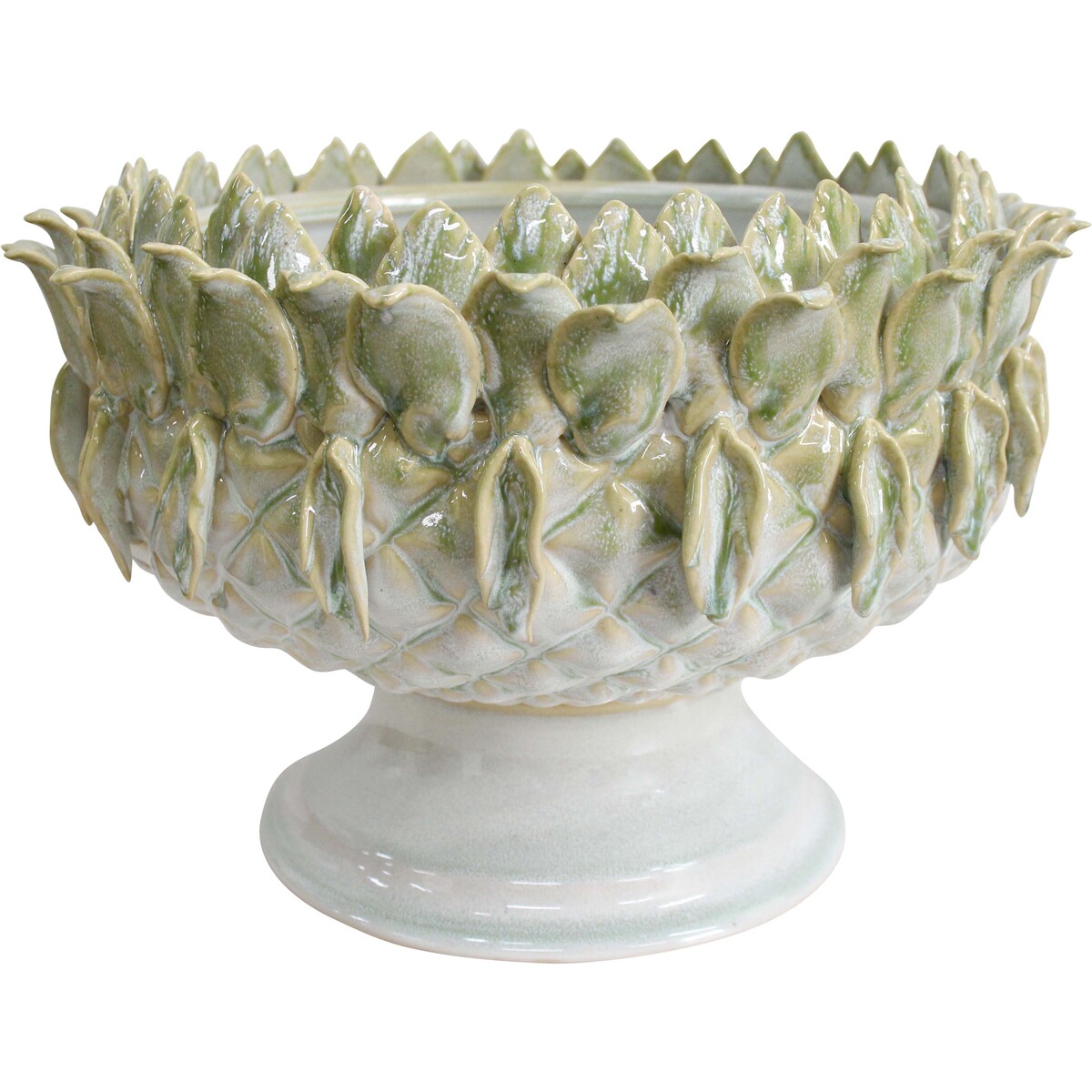 Discover the charm of artisan craftsmanship with our exquisite Pineapple Pedestal Bowl, a captivating addition to any home or office decor. Elegantly handcrafted from the finest ceramic materials, each bowl features a reactive glaze that guarantees no two pieces are identical, adding to its unique allure. The subtle variations in colour enhance the individuality of this piece, entwining its intricate artistry with a personal touch.