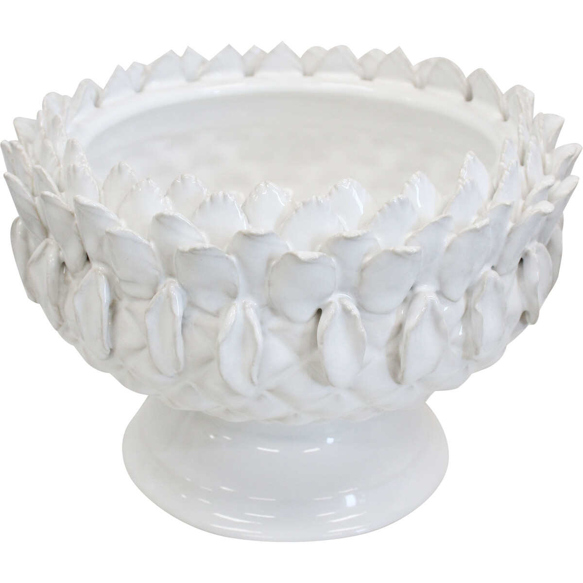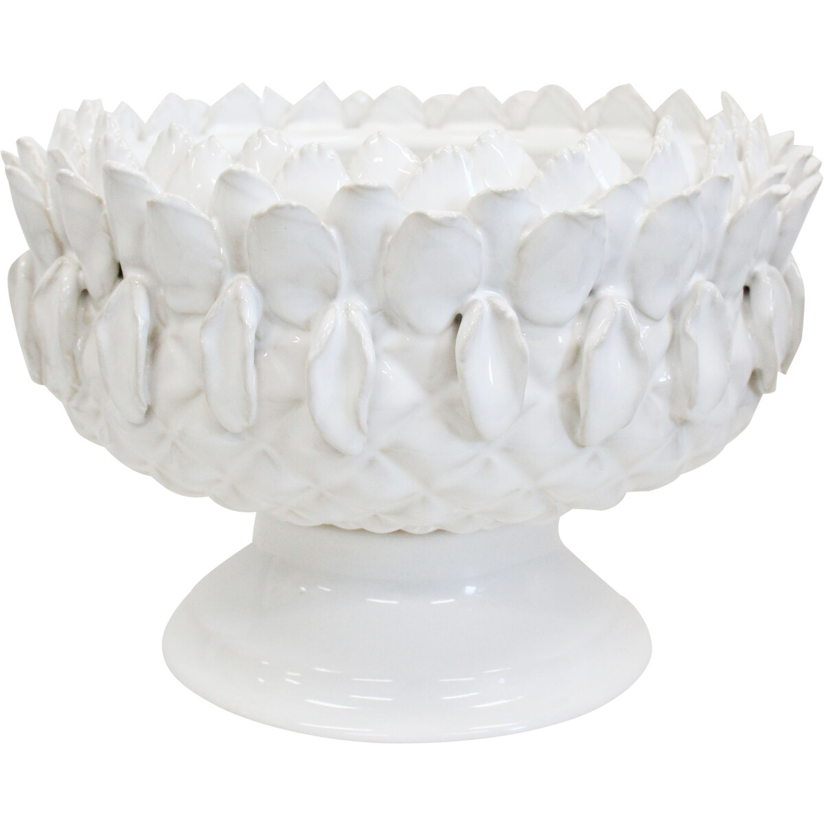 Introducing the Pineapple Pedestal Bowl Ivory, an exquisite piece of craftsmanship that exudes elegance and versatility for home or office decor. This stunning bowl, masterfully handcrafted from high-quality ceramic', stands as a testament to the timeless beauty of artisanal pieces. Measuring a perfect 25x25x16cm, this ivory-hued centerpiece commands attention without overpowering your space.