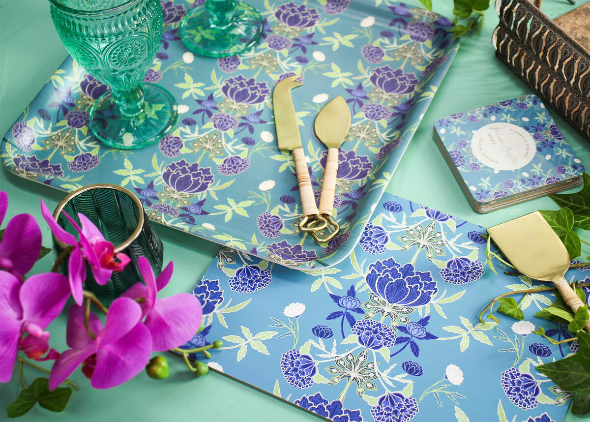 They’re a sturdy build - made from an MDF base with a cork back to keep slippage at bay. Each one is 30cm x 21.5cm, which is a practical size for daily use and not so big they swallow smaller surfaces. The blue palette feels both rich and fresh - pops against white ceramics but doesn’t drown out paler colour palettes either.