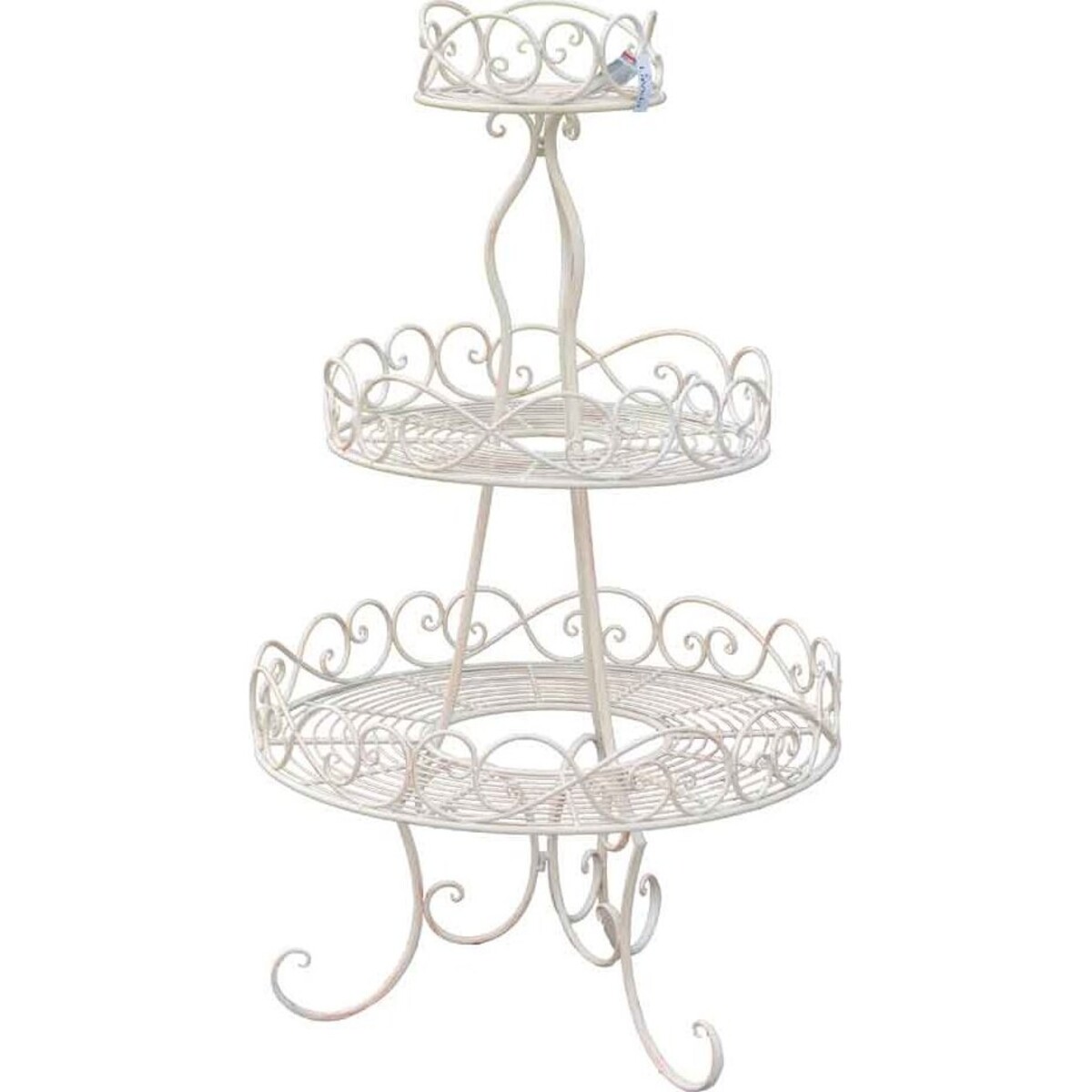 The Plant Holder - Valmont Cream is an elegant-looking metal craft that features beautiful and intricate details. It looks stylish in its snow white colour and its spiraling patterns of metal crafts. It consists of three platforms - smaller at the top and wider at the base.