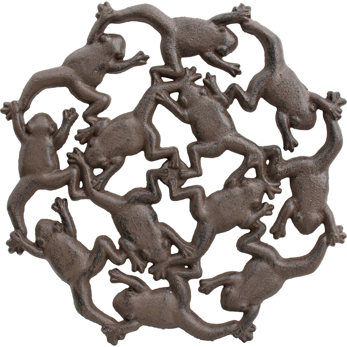 The Plant Stand Frog has a look that’s hard to ignore. It’s got this effortless charm, with leaping frogs all intertwined. We love the way it feels playful but sturdy. That dark, rich cast iron colour is really versatile too - and at 28x28x4cm it’s not too big, not too small. And we hear from some clients that people use them as quirky trivets or even on the patio for pots. The finish itself gives a lovely vintage look, but the design really keeps it modern and fun. Good for customers after a pop of interest in their lounge or home office. Some use them as statement stepping stones in a covered porch, others place them on an outdoor table to protect surfaces from the heat of big terracotta planters. It does look great in a minimalist room where you want a single sculptural detail - or among lots of green, indoors or out, where it really shines.
