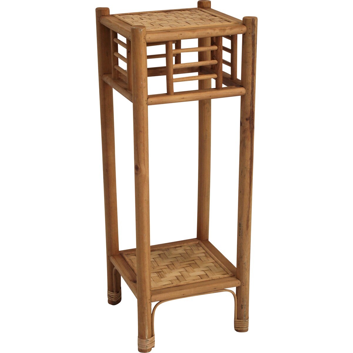 The stand is a tall and elegant piece crafted from bamboo and wood. The shape is basic with a top platform with 30 cm dimensions adequately large to give space for small to medium sized plater. The lower shelf adds to its look where you could pair the plant above with its little partner. Despite the 80 cm height the stand has great balance and a simple yet impressive presence in your space. The frame of the planter has been crafted from wood while the top has a patch of bamboo adding textured elements to the design. The same textured detail is on the lower shelf as well. The natural woody colour plays out its magic and helps blend in the piece with the rest of the furniture.