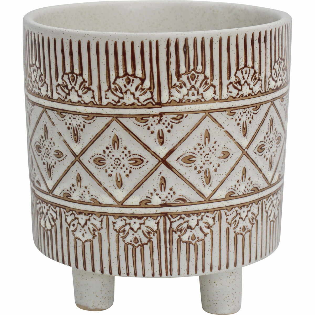 The Planter Aztec Nat Med is suitable for use in growing different types of plants such as herbs (garlic, ginger, etc.), spices (pepper, turmeric, etc.) veggies (such as tomatoes, lettuce, etc.) and even ornamental plants (roses, poinsettia, etc.). It doesn't require much space since it is made in a portable sized dimension which measures 15 centimetres in length, 15 centimetres in width and 15.5 centimetres in height. The interior is an immaculate white colour that shines with glossy brilliance. The exterior on the other hand is ornately decorated in tawny brown colour over a white background.