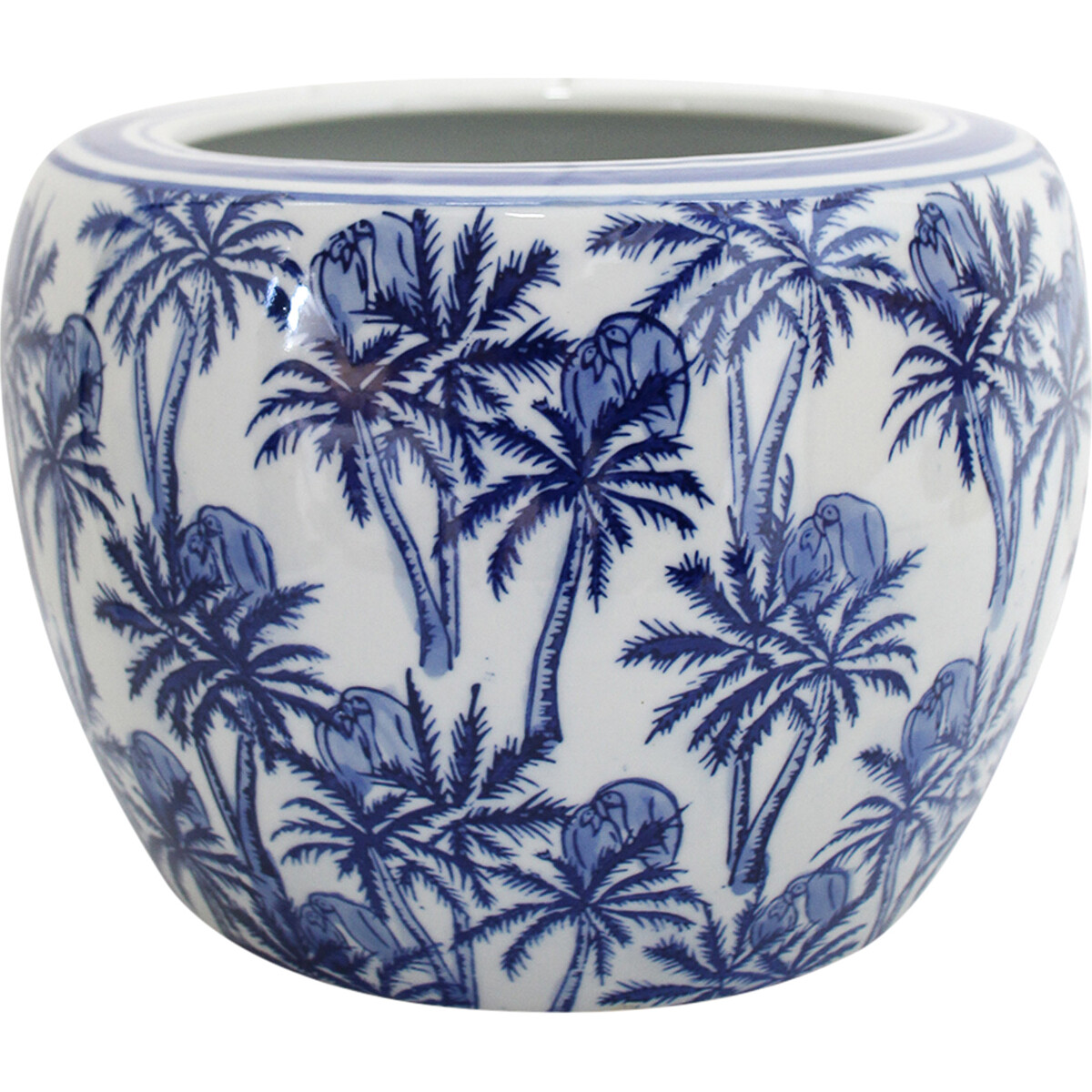There is that natural joy that comes from nurturing and growing one's own plants especially around the house. The Planter Bahamas is a decorative ornament in its own right due to its superior aesthetic appeal. Its graceful look would however, look even much more beautiful if used in growing ornamental plants such as protea, golden wattle or any other. The planter is made of pure porcelain in a glossy white palette. However, on this white background are blue saturated images of tall palm trees. The planter is usable both indoors and outdoors.