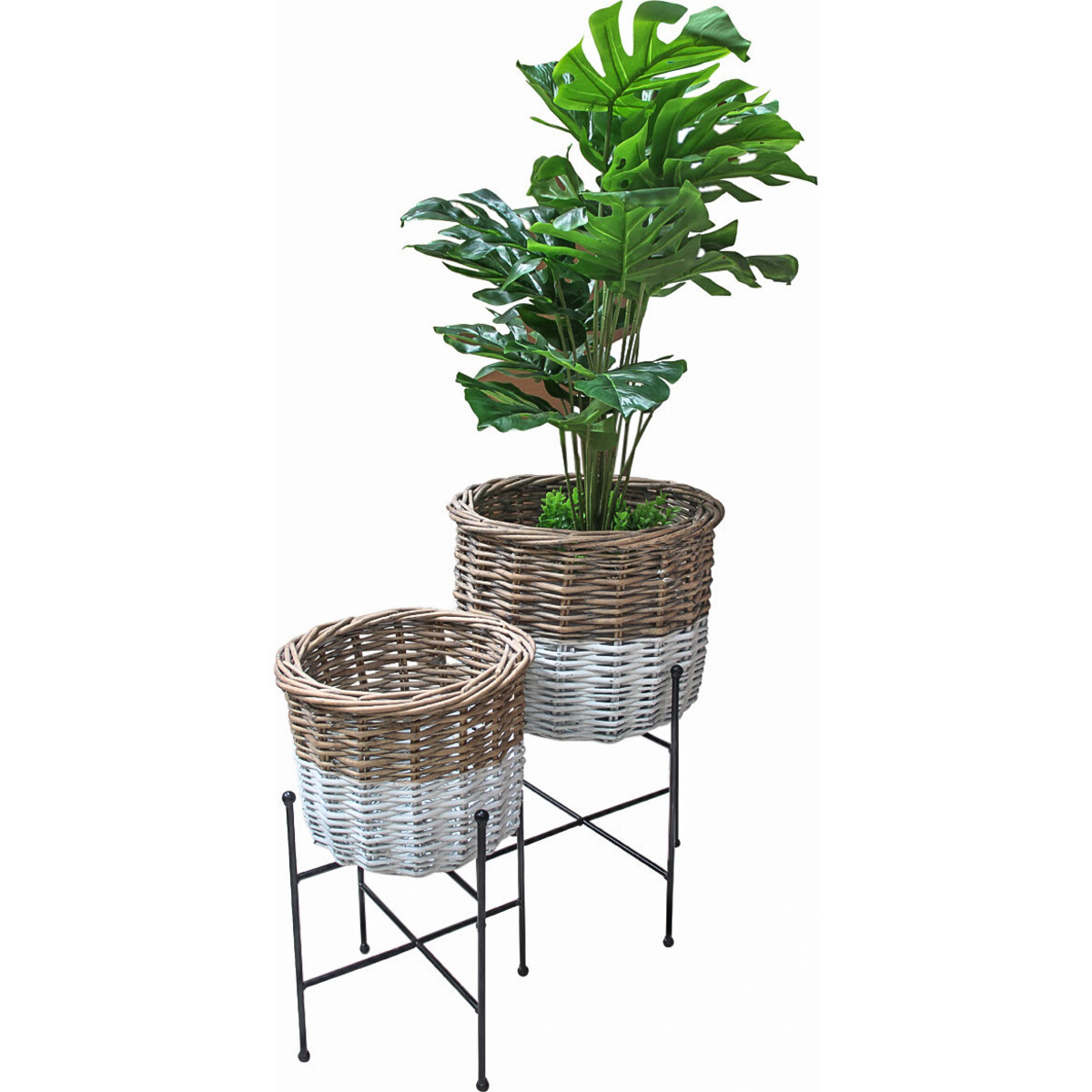 The wicker basket the iron made stand hosts is all of 25 cm in dimeter while the stand itself is 44 cm in height. The dual tones wicker basket is sturdy and shall be able to take the onslaught of moisture and soil. You could easily remove and place whatever plant you so desire in it. The basket comes off easily and can be as easily be replaced. The stunning combination of hard metal with woody coloured wicker is indeed rather chic and modern and will add that touch of something special to corner and entryways after all like the rest of your d?ɩcor, your plant collection too needs some amount of admiration to thrive on! The stand ahs bene designed that despite the weight of the soil and the plant itself its legs have bene made wide so as to give it a great balance.