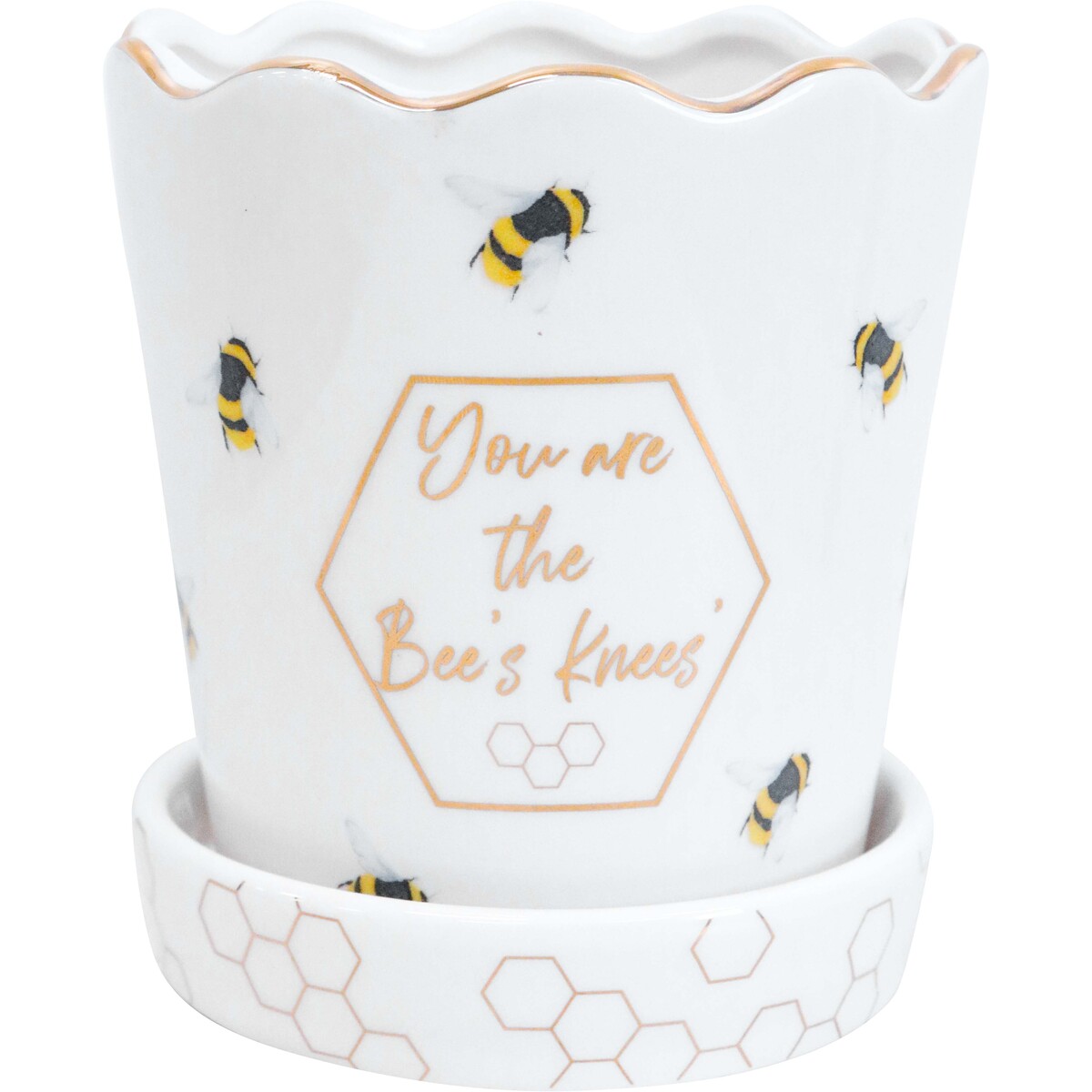 Our Planter Bee’s Knees’ is a winner for anyone who loves cheerful, whimsical decor. We’re talking quality ceramic with a gloss finish, and let’s be honest, those little bumble bees flitting around are just good fun. This is a happy little planter, 10x10x13cm in size and topped off with gold writing on the front and a gold rim along its wavy edge. It’s just charming – we can easily see this being snapped up as a gift or picked up as an accent piece to brighten up neutral rooms or office desks. Customers can style it any which way: succulents, trailing ivy or bushy petunias all look equally at home in its wide top opening. The tray is separate from the pot and rests perfectly underneath with that honeycomb motif. And yes - it actually works as a planter thanks to its drainage hole at the bottom so plants can thrive without any trouble.