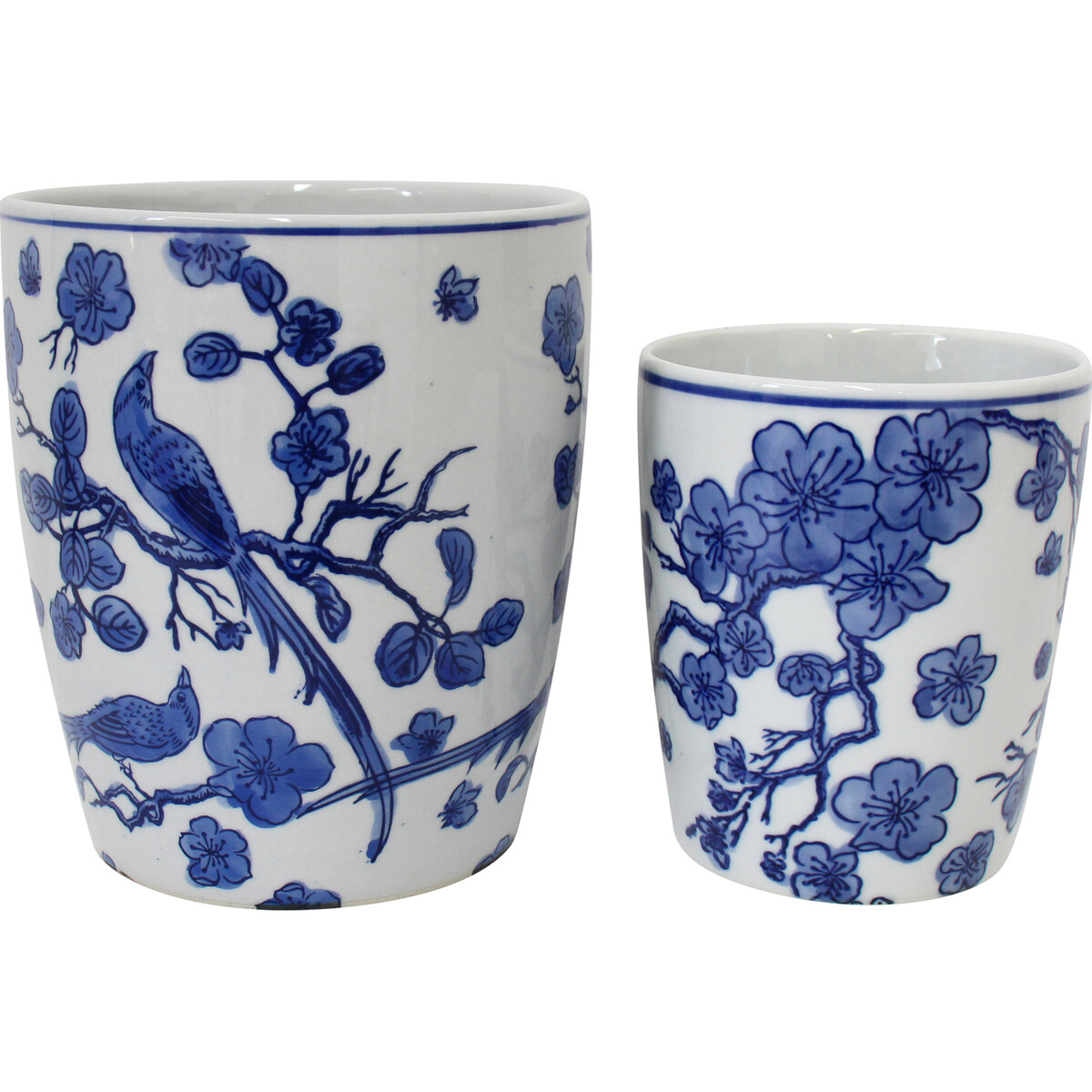 Featuring two different sizes of large and small, this Planter Blossom S/2 has a size suitable for every customer. The large size is made in a dimension which measures 17 centimetres in length, 17 centimetres in width, and 20 centimetres in height. The small sized version on the other hand, measures 13 centimetres in length, 13 centimetres in width, and 15.5 centimetres in height. It is comprised of two planters each of which has two motifs. The first motif is that of a lily flower while the second motif is that of birds.