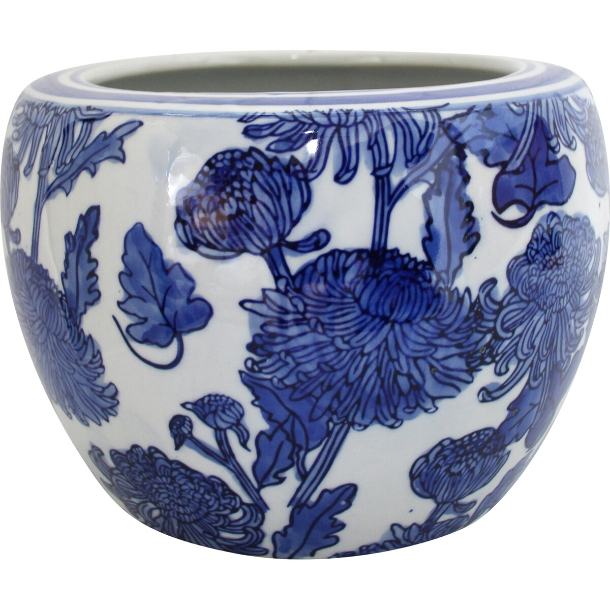 The Planter Botanical is a portable sized planter measuring just 14 centimetres in height, but with a length of 20 centimetres and an equally 20 centimetres wide dimension. It is moulded in a shape which is a visual delight as it is carefully hand-painted in pretty floral patterns using a deep shade of blue. The floral painted images feature several flowers each of which has a conical head and a multitude of flower petals. There are also some occasional leaves that are shown to be aloof from the rest.