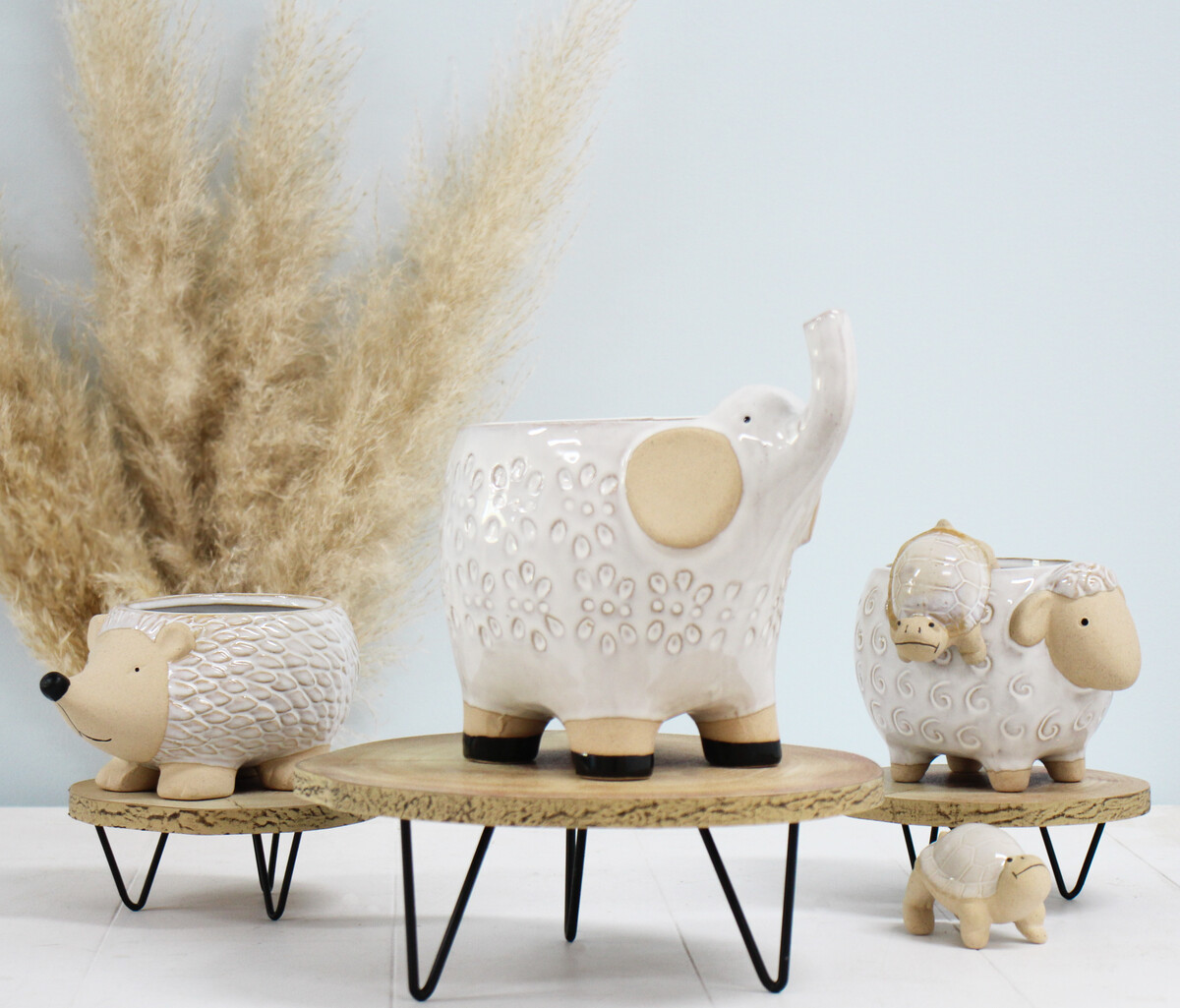 Fine quality ceramic comes together with ana adorable design that all gardening enthusiast would live to explore as part of the green scape. Tiny but made to impress with the space it gives to small to medium sized plant. The elephant is all white in colour, the pattern on the body adding to its unique looks, while the floppy ears and tell-tale massive legs adds to its most endearing features.