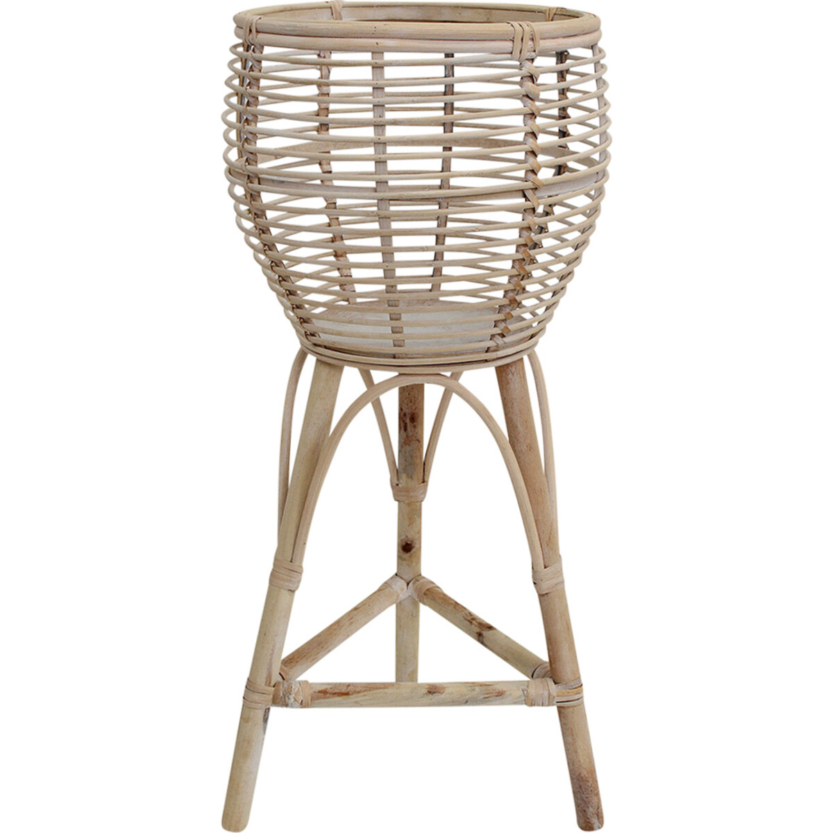 Standing tall at an impressive height which measures 70 centimetres, it has a length measuring 32 centimetres and a width that is also 32 centimetres. The exterior is barely left in its rattan natural cream colour while its interior is lacquered lightly in white. It stands on a sturdy built wooden tripod with a triangle shaped bracing connecting all three legs and giving it firm support. It can therefore be placed on flat surfaces and floors of hallways, living rooms, hotel lobbies, etc.