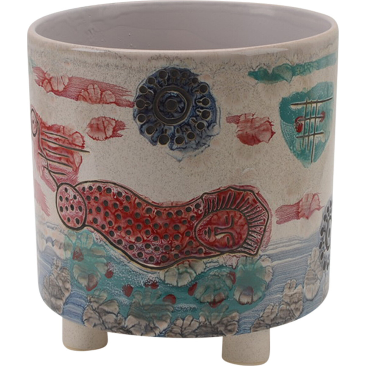 As a shop owner, you have to study the changes in customers' demands. For example, contemporary demands for planters comes with a difference; people no longer demand for just practical planters, they want their planters to come in a visually appealing, adorably decorative form such as that of this Planter Dakota XL. This planter wears a naturalistic look with its glazing of natural phenomena such as the sea, flowers, and patches of pink coloured clouds. It even features a figurine like that of ancient Egyptian wood carvings. The motif is rendered in appealing colours of red, blue, white and black over an ash-white background.