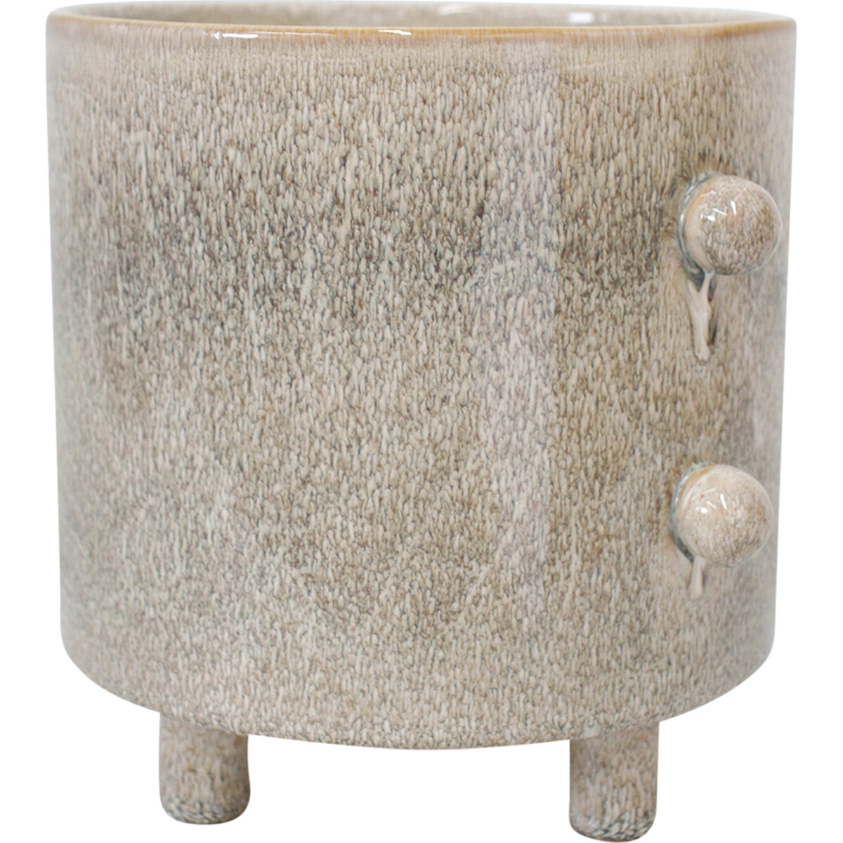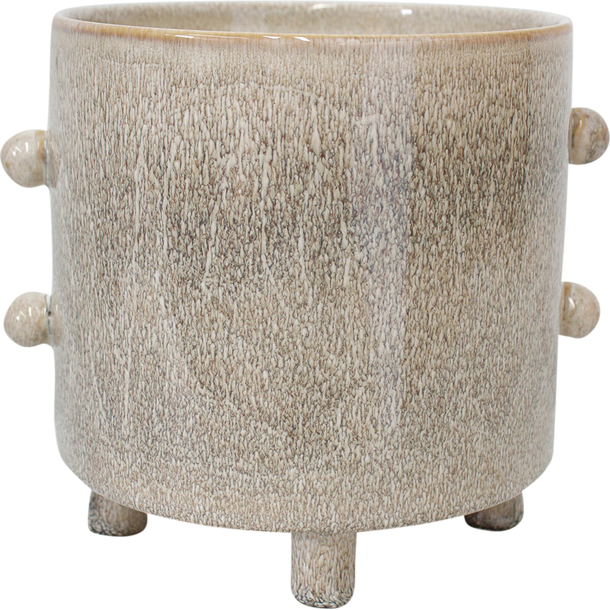 The soft grey colour and the speckled pattern on it combines gorgeously with the deeper colour of the inner surface-this ceramic planter has a height of about 21 cm and it has a similar kind of width making it stocky and sturdy with a great deal of balance. The neo modern design with stud like protrusions on the body is chic and truly unique. Made to impact your green space with its completely new look.