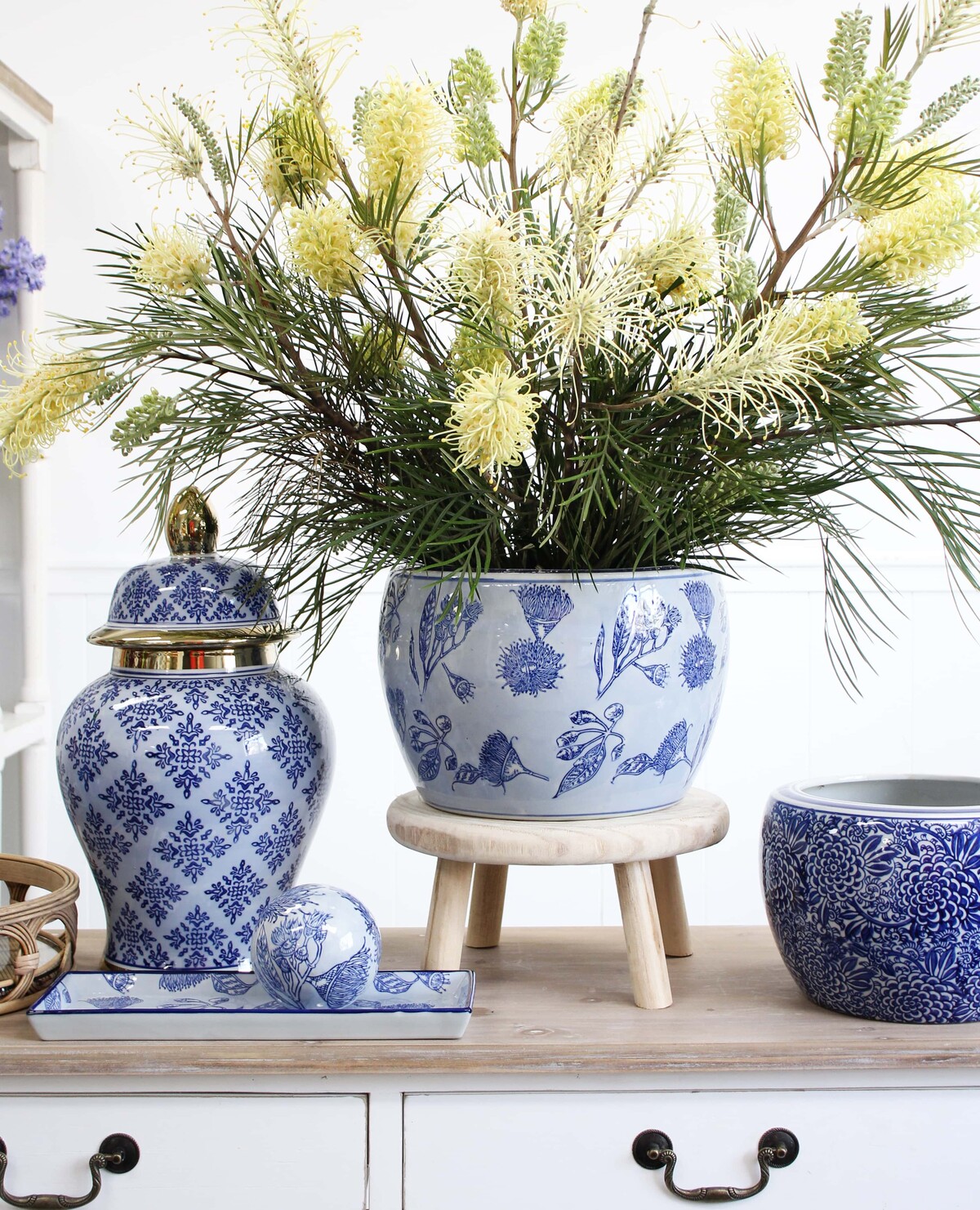 Something to mention - each piece is handpainted and glazed, so expect imperfections in the finish and glazing. They’re not faults, but actually part of what makes every single planter unique. These little quirks add charm. The #Planter Flowering Gum XL is an eye-catching feature that brings blue-and-white elegance into homes and offices alike.