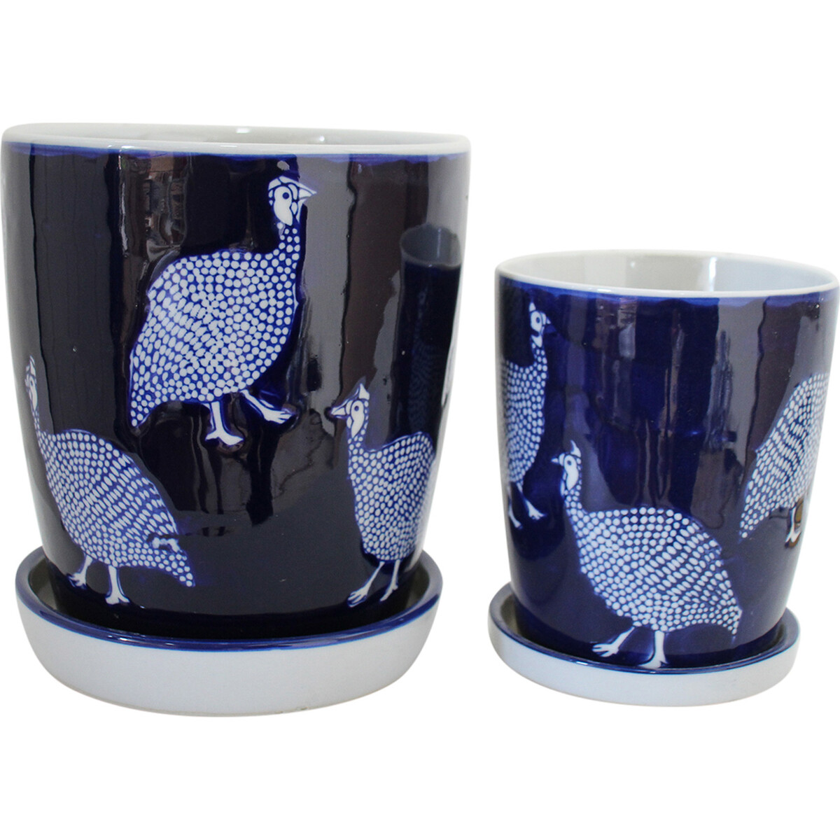 It would sound amazing when you tell your customers that this Planter Guinea Fowl Dk S/2 is basically hand-painted! They would admire the ornamental beauty all the more. This is because this planter contains such intrinsic beauty which makes it an ornament suitable for all décor. And when used in growing ornamental plants such as rose flowers, Buxus flower and even our Australian golden wattle, it would all the more stunning! The guinea fowl motif gives it a country accent, while the porcelain design gives it a contemporary touch.