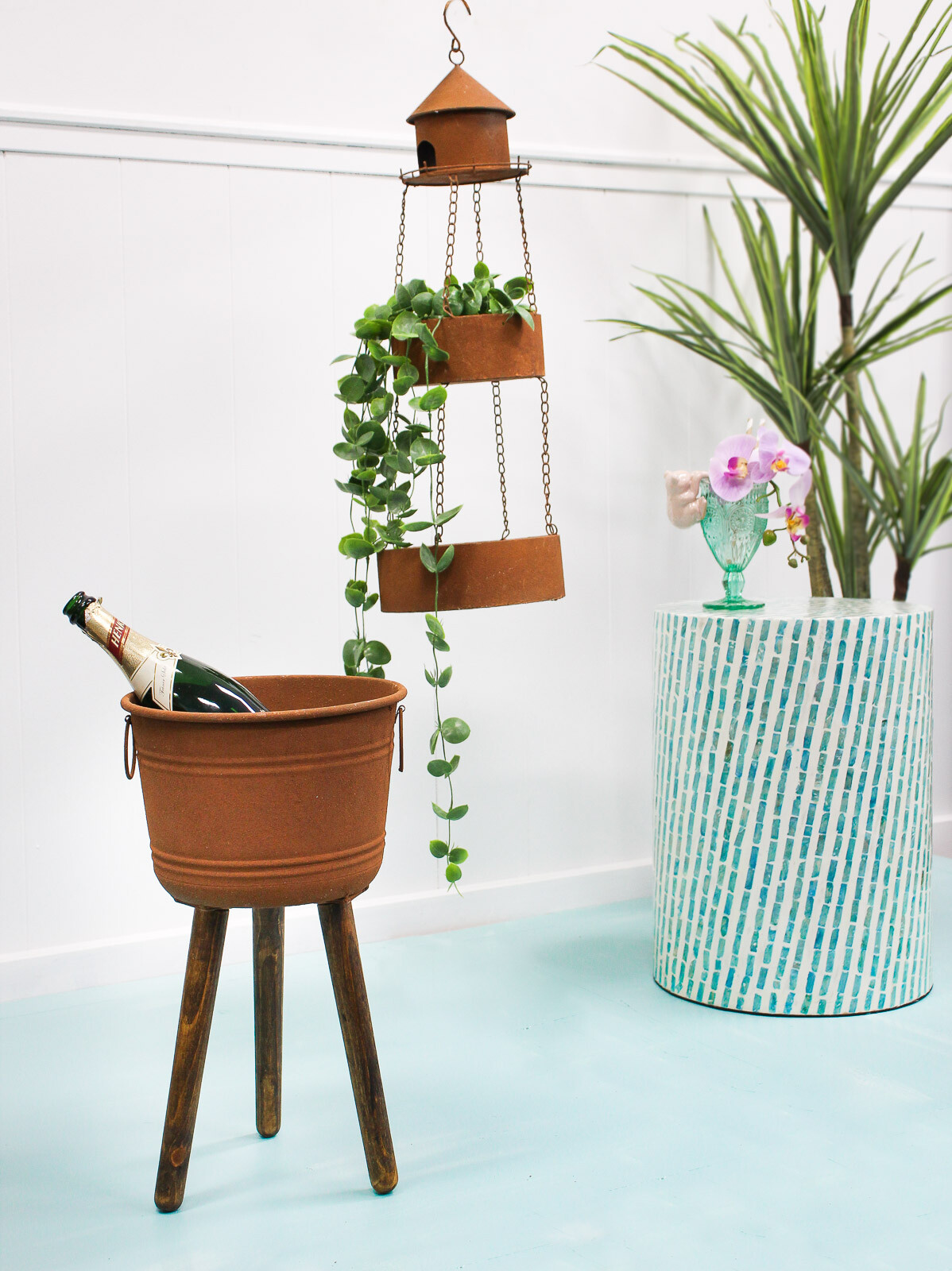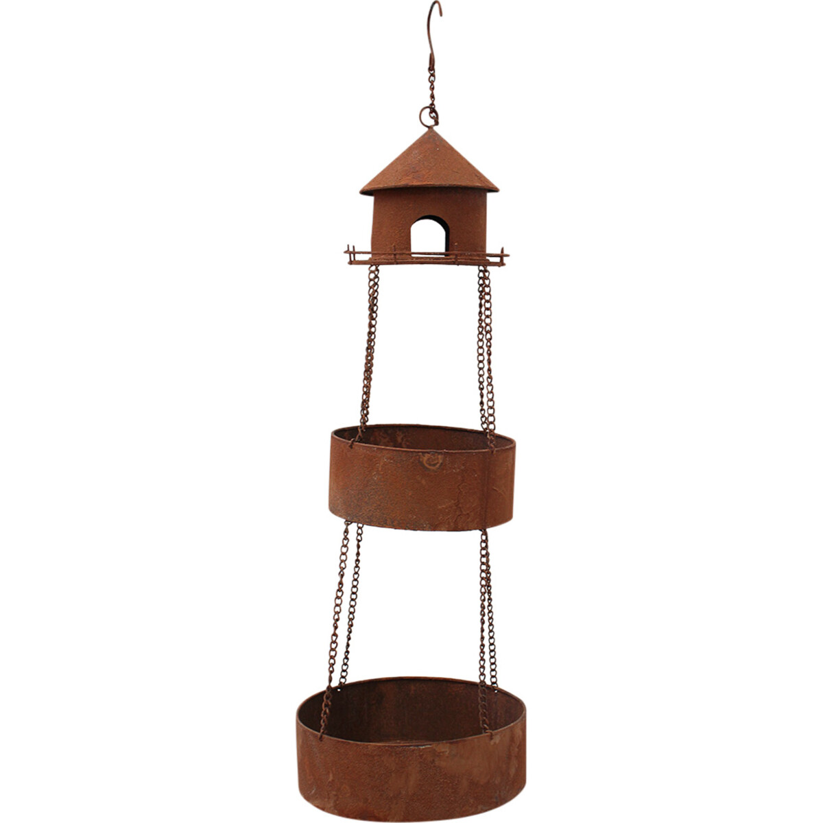 Discover the charm of our Planter Hanger Birdhouse, an enchanting addition to any homeware and giftware collection. With dimensions of 22x22x77 cm, this beautifully crafted piece is a harmonious blend of form and function. Its rustic brown hue, a testament to its carefully handcrafted metal construction, features a delightful patina of character imperfections that add to its authentic allure.