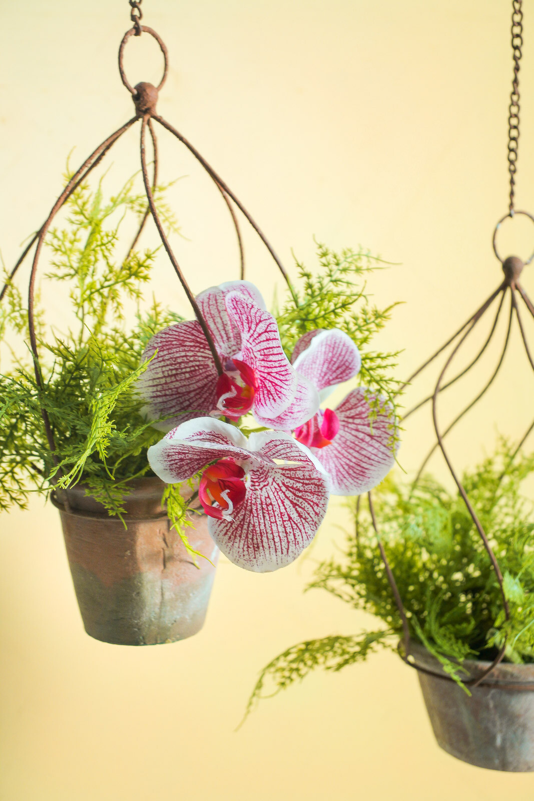 Ideal for an array of climbing plants or flowers, this large hanger planter not only serves as a green sanctuary but also acts as an artistic focal point in any space. The design allows for ample growth room, encouraging lush foliage to interweave with the graceful curves of the metal, creating an organic tapestry of greenery that is sure to capture the attention of guests and customers alike.