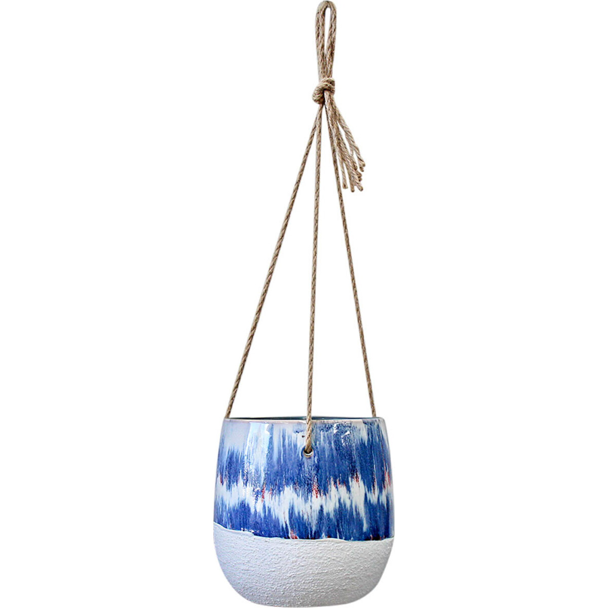 The Planter Hanger Indigo Wash has an eclectic design featuring a combination of ornamental beauty, rustic accent, and space economising design all of which would meet the needs of your customers. It is made using premium quality stoneware ceramic shape that looks like the combination of a cup and bowl. Accompanying it is a twine made rope for easy hanging.