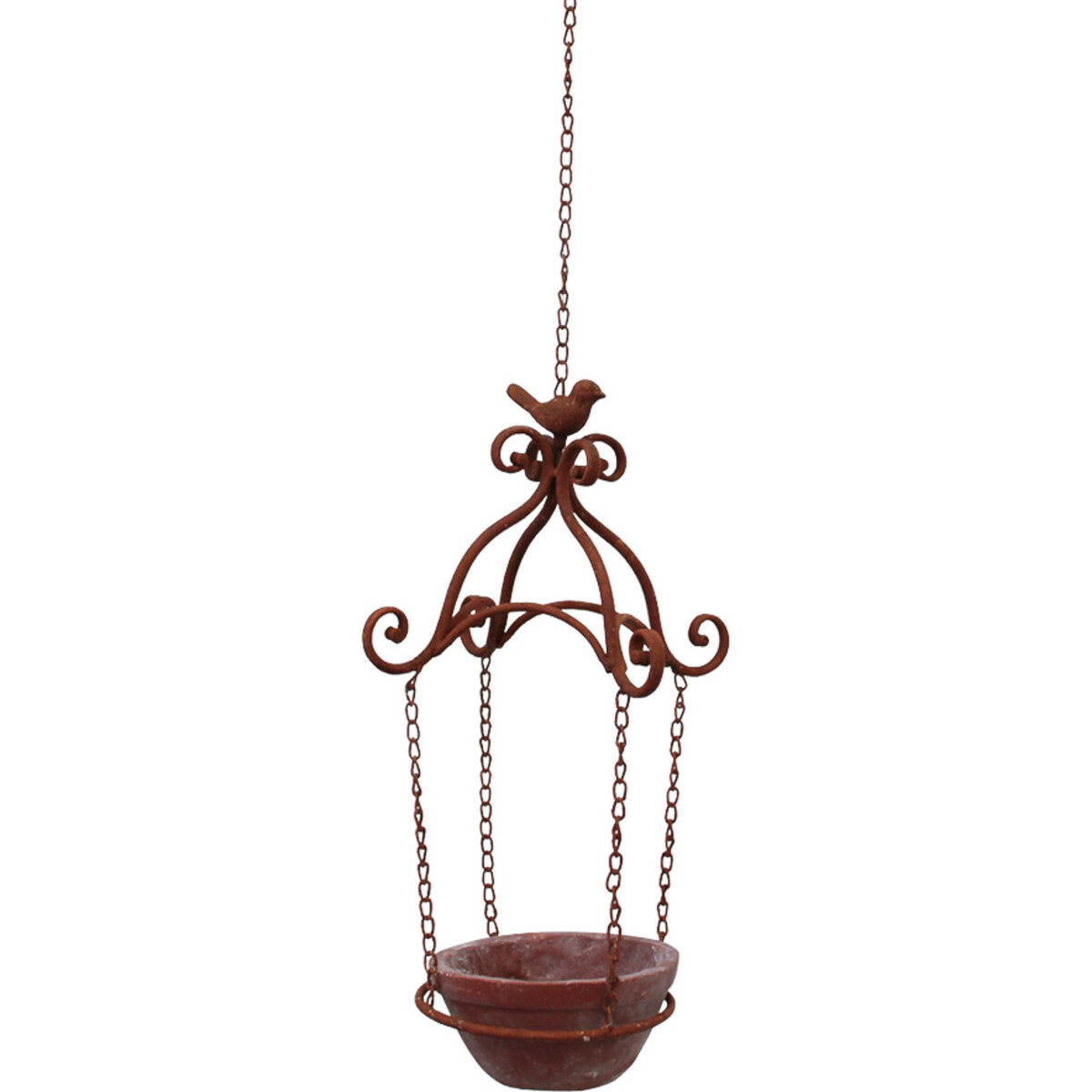 Hand-finished in a rustic hue that is as versatile as it is striking, the Planter Hanger Partere features a blend of robust metal and earthy terracotta materials, ensuring durability alongside its aesthetic appeal. The sculptural form, crowned with a charming metallic bird, lends an air of whimsy and refinement to your decorative ensemble. The gentle rust finish, purposely handcrafted to showcase unique character imperfections, ensures that each piece tells its own story and enhances its surroundings with a bespoke touch.