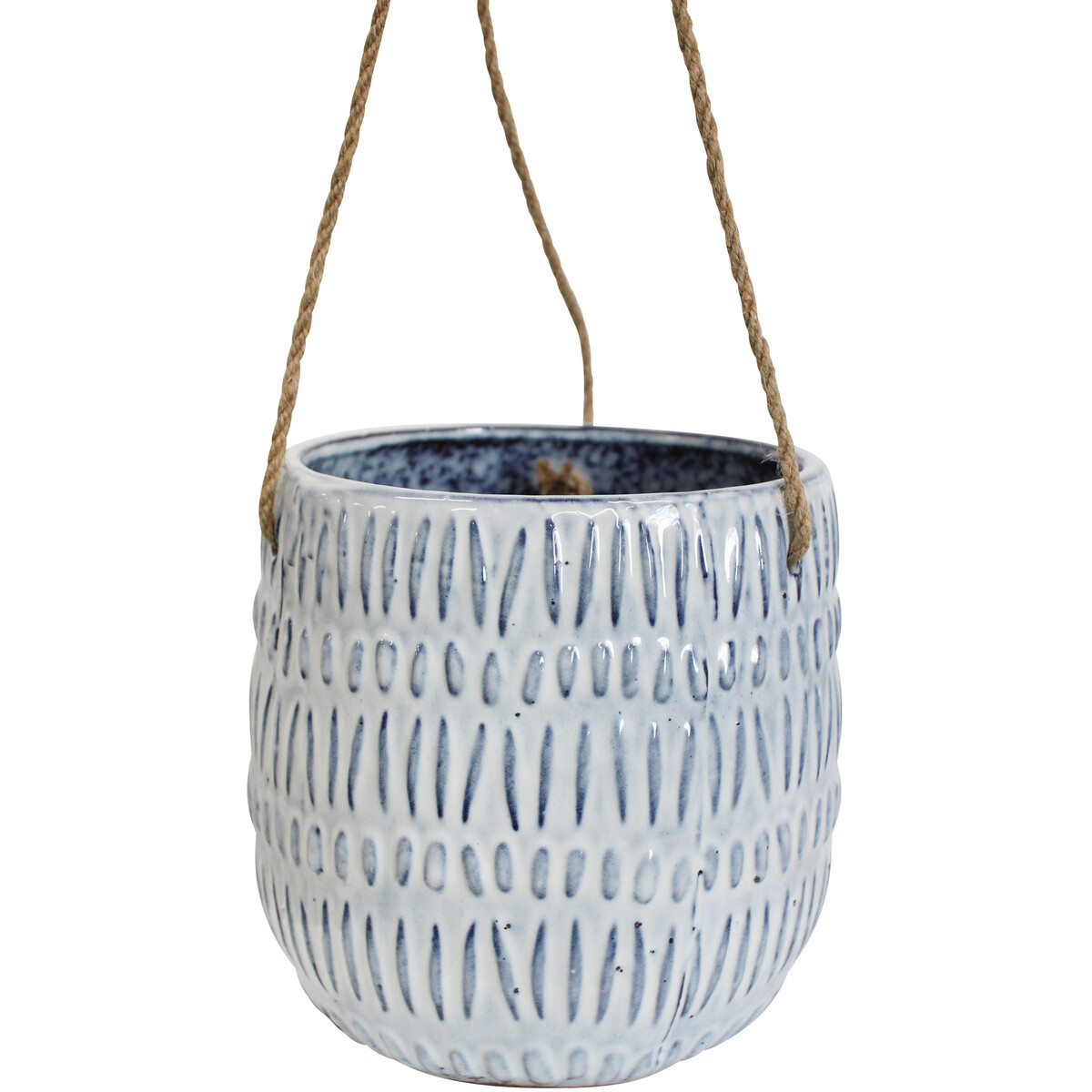 The Planter Java Hanger is an adorable planter pot with a spectacular hand glazing on the body of a compact 17 centimetres planter. It is made of stoneware ceramic and features a glazing of two interlacing patterns rendered in deep and light blue colour over an immaculate white background. This subtle combination of colours, the glossy smoothness, included twine hanging rope, and the rustic accent adorned though the use of twine are several of the reasons why your customers would definitely want to buy this planter. It can either be hanged or placed on flat surfaces in the hall way, porch, laundry room, window ledge, balcony, etc.